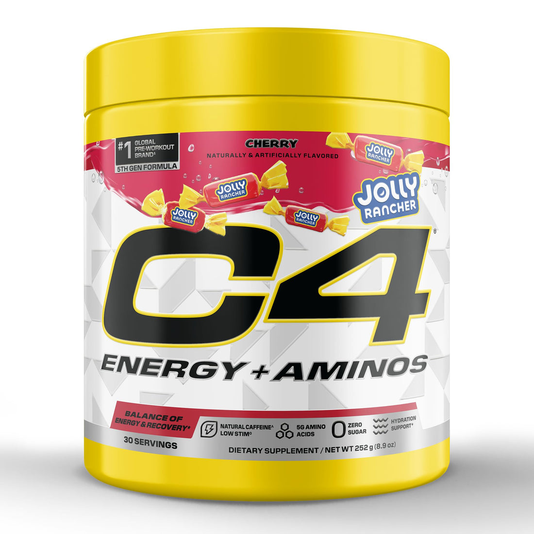 Cellucor C4 Energy + Aminos Powder | Jolly Rancher Cherry | 5g BCAAs & EAAs for Muscle Recovery, 3 Electrolytes for Hydration, 100mg Natural Caffeine | Pre Workout | Zero Sugar, 30 Servings
