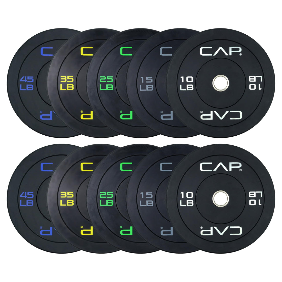 CAP Barbell 260 LB Economy Olympic Bumper Plate Set with Color Logo | Black