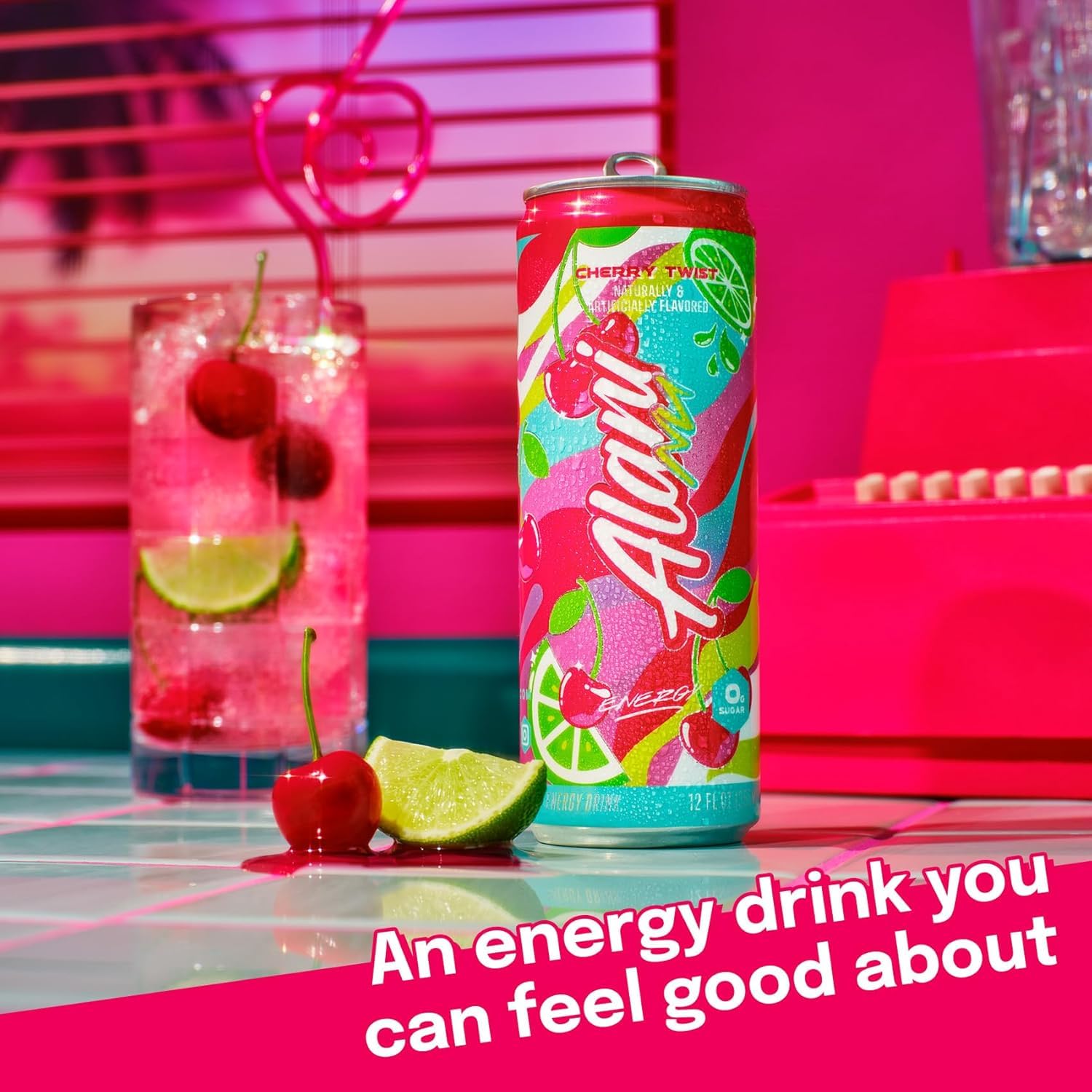 Alani Nu CHERRY TWIST Ice Sugar Free, Low Calorie Energy Drinks | 200mg Caffeine | Antioxidants | Biotin, B Vitamins | Zero Sugar | 15 Calories or Less | 12 Oz Cans | 24 Count
