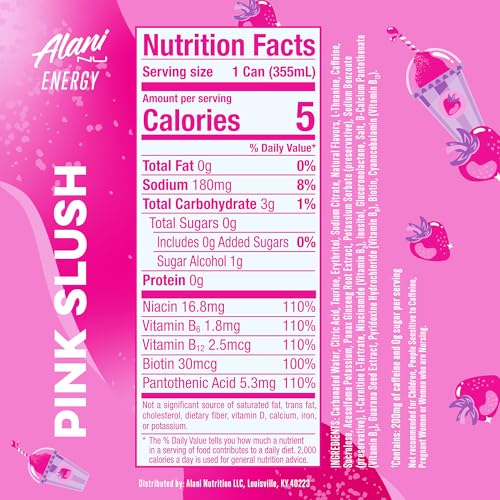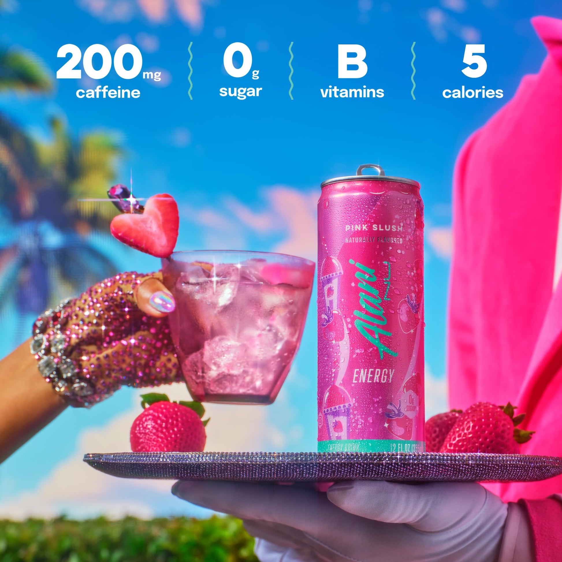 Alani Nu PINK SLUSH, Sugar Free, Low Calorie Energy Drinks, 200mg Caffeine, Biotin, B Vitamins, Zero Sugar, 10 Calories, 12 Fl Oz Cans, 12 Pack