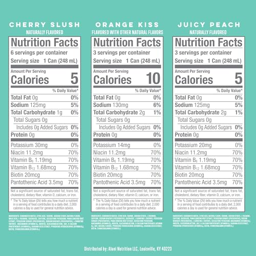 Alani Nu VARIETY PACK (CHERRY SLUSH, JUICY PEACH, ORANGE KISS), Low Calorie Energy Drinks, 100mg Caffeine, Biotin, B Vitamins, Zero Sugar, 10 Calories or Less, 8 Fl Oz Cans, 12 Pack
