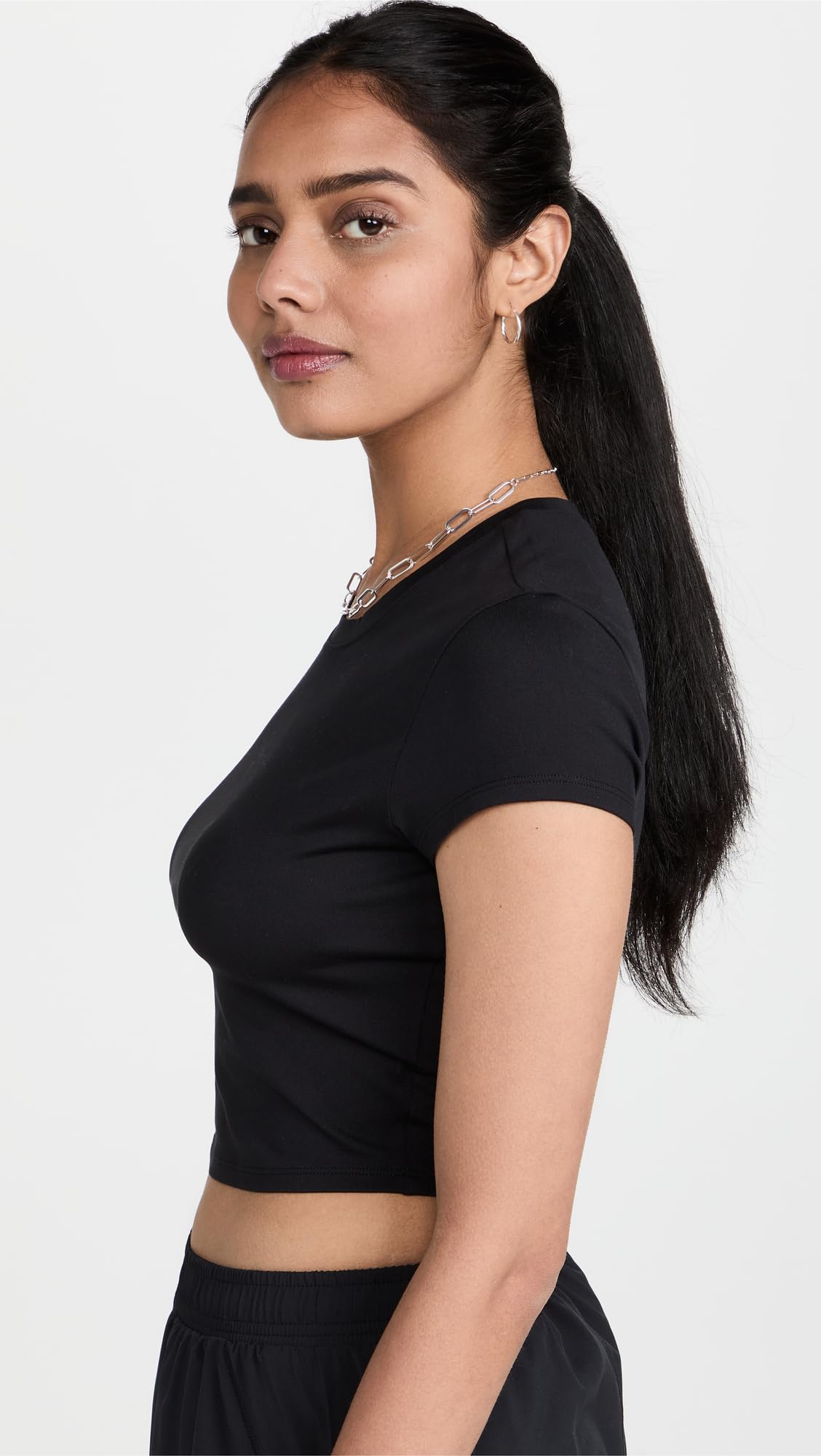 Alo Yoga Women's Alosoft Crop Finesse Tee, Black, L