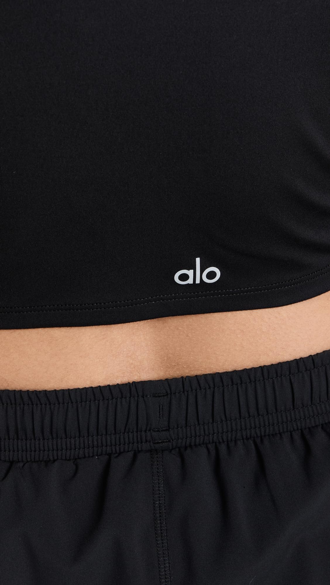 Crafted in the label's stretchy and moisture-wicking jersey for a cool and comfy feel, this Alo Yoga crop top is a must-have layering essential that's great for workout or weekend looks alike.
