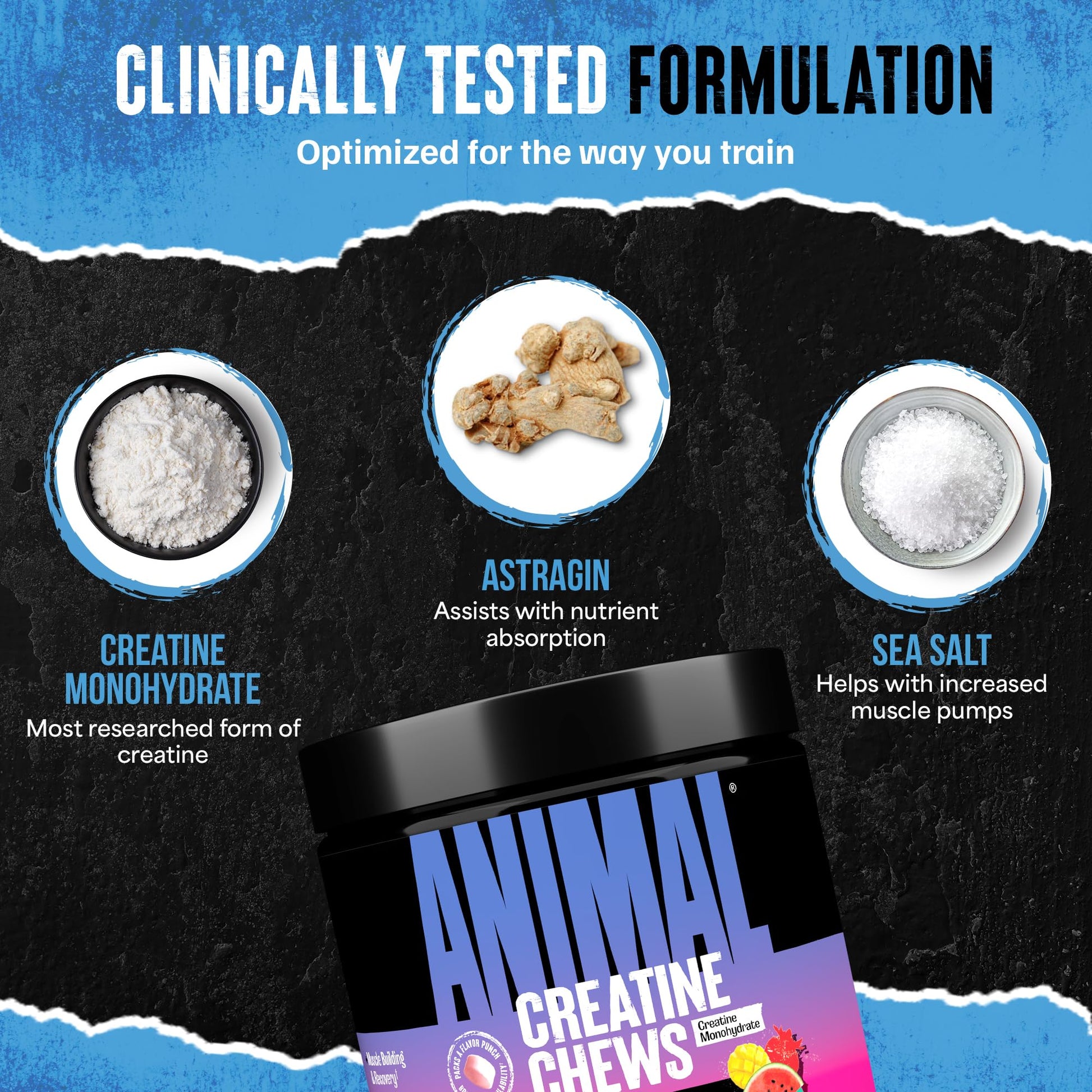 Animal Creatine Chews Tablets - Enhanced Creatine Monohydrate with AstraGin to Improve Absorption, Sea Salt for Added Pumps, Delicious and Convenient Chewable Tablets - Fruit Punch