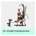 Details: The Bowflex PR1000 home gym helps strengthen your muscles and add a bit of cardio training to the mix with over 25 strength exercises and a built-in rowing station. With up to 210 pounds of Power Rod resistance, this versatile machine helps work the abs, arms, chest, back, shoulders, and lower body.