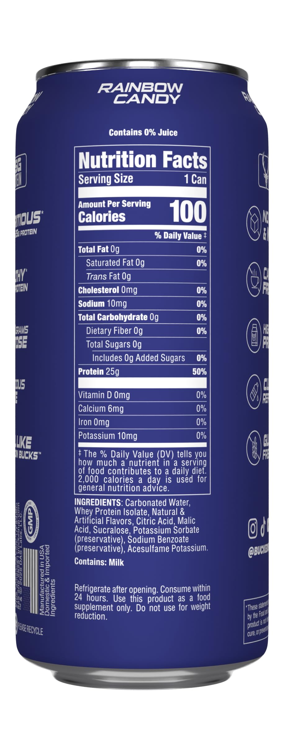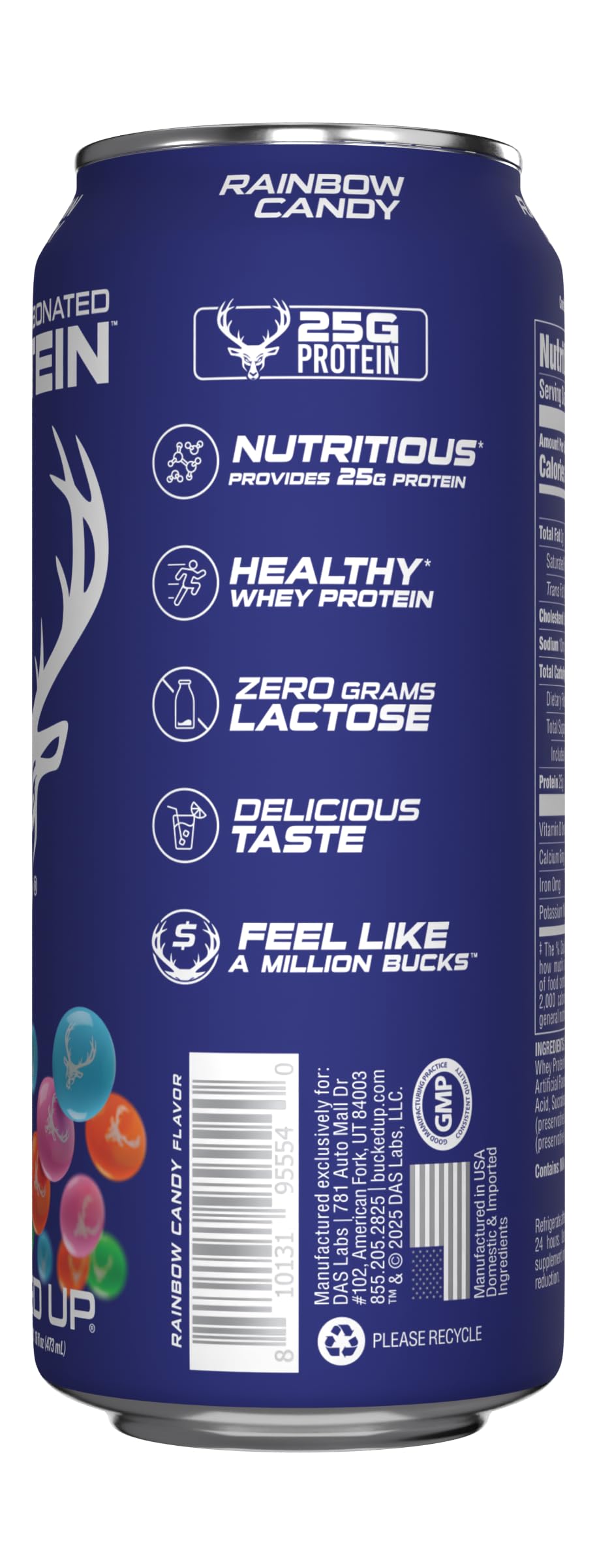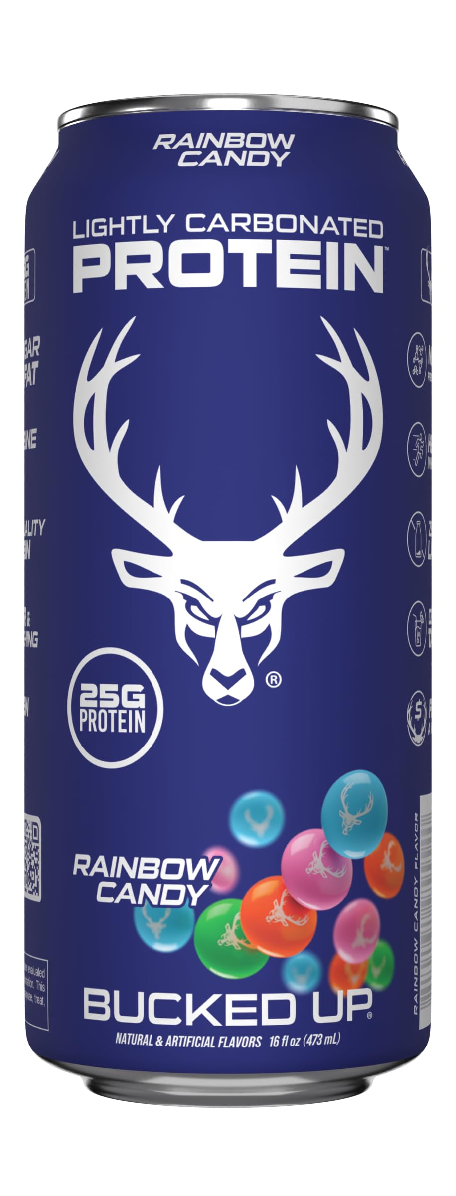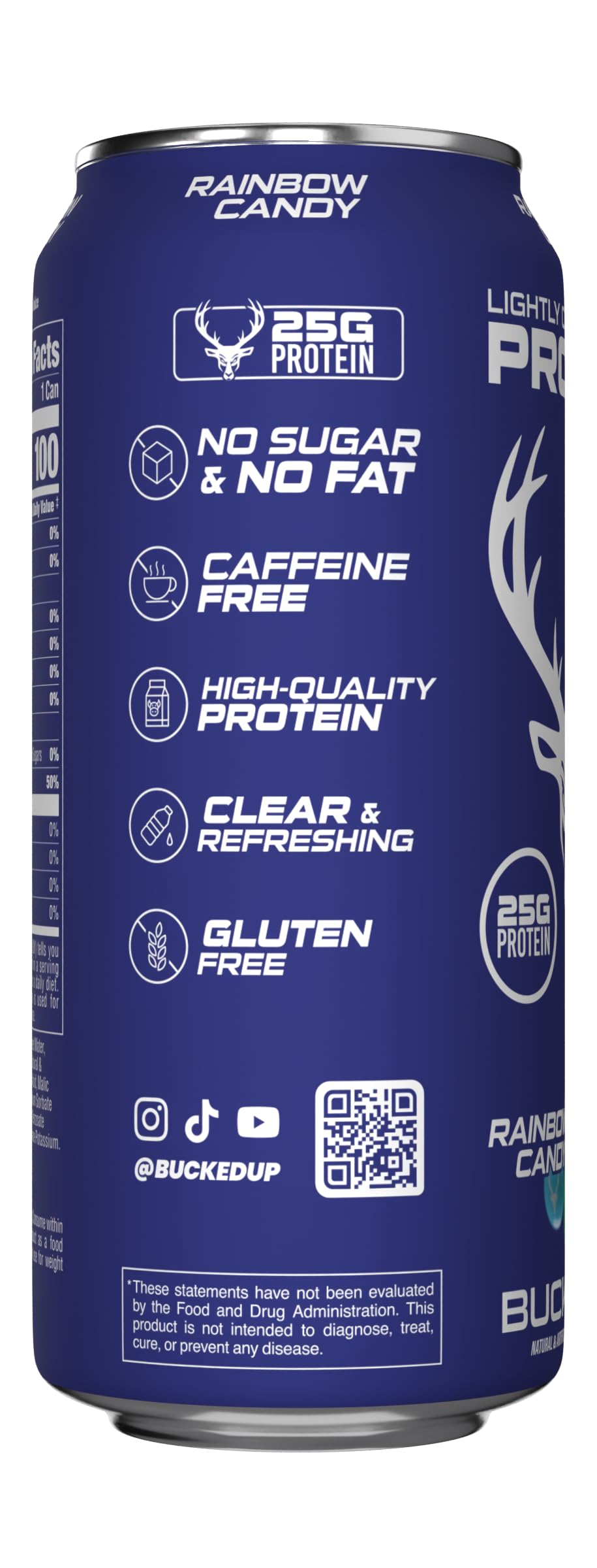 Bucked Up Lightly Carbonated Protein Soda | 25g Whey Isolate - Zero Sugar, Low Calorie, Caffeine Free, Clean Drink | Sparkling Protein Soda - 12 Pack, 16 oz Cans (Rainbow Candy)