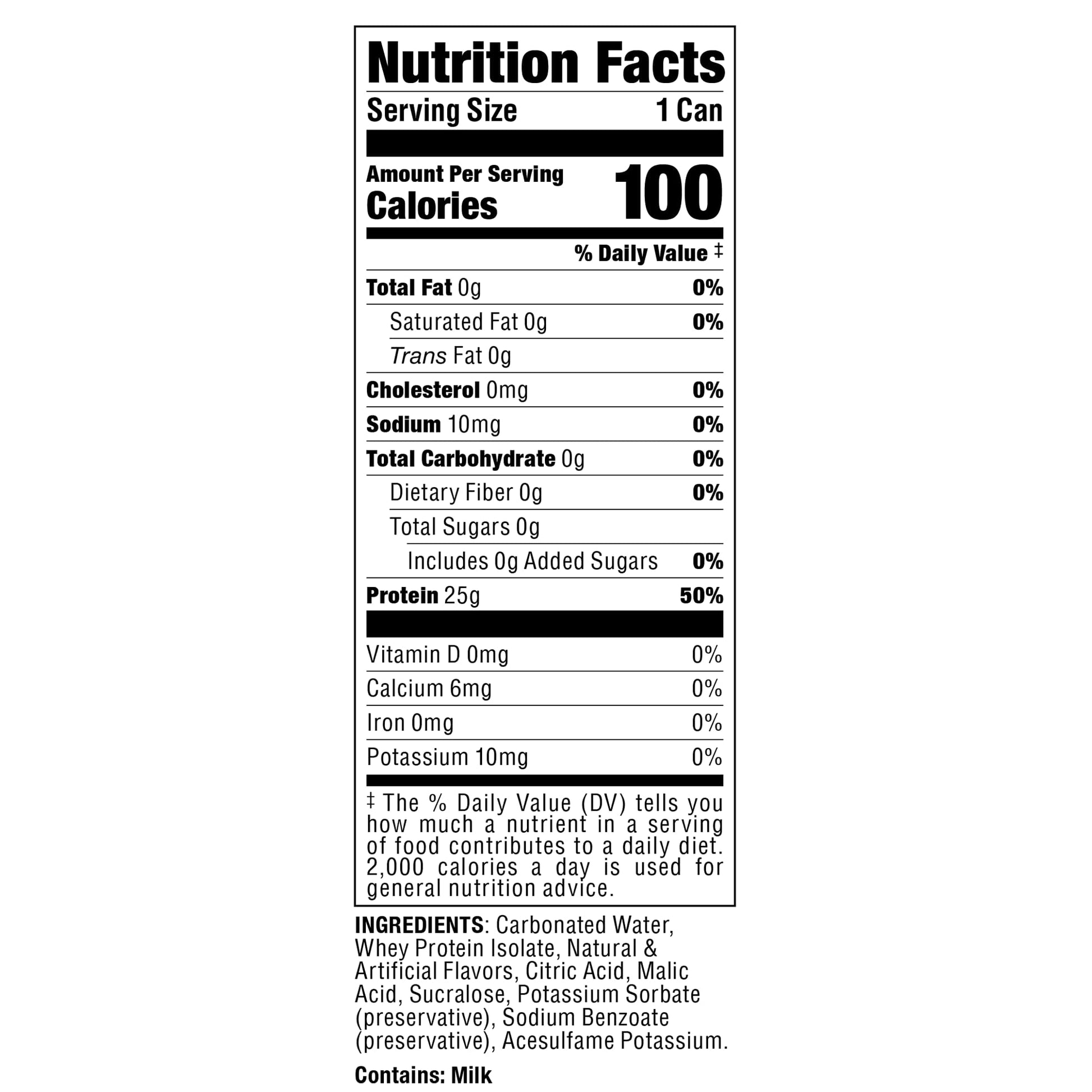 - HIGH PROTEIN 25g: Each 16 oz can contains 25 grams of high-quality whey protein isolate, in a clear and clean format with no dairy solids and no caffeine.