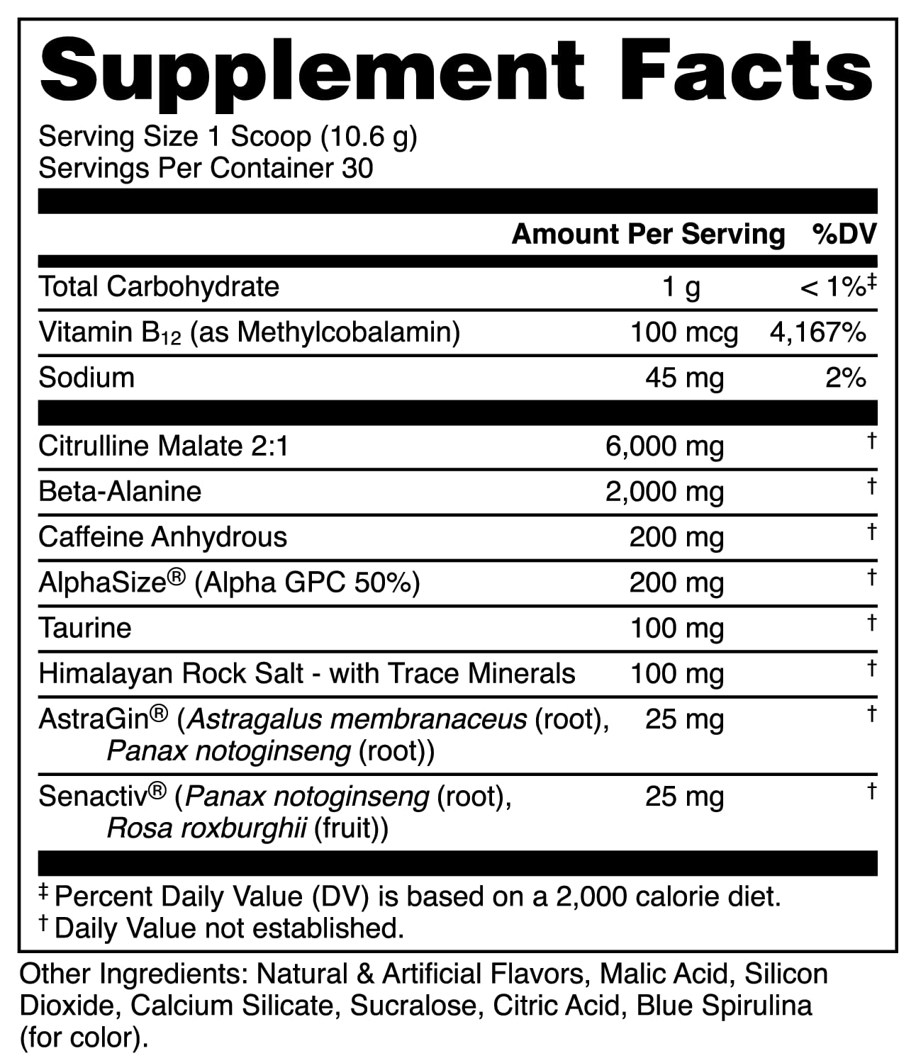 - AMAZING TASTE - Flavor like you've never had in a Pre Workout drink! Natural and Artificial Flavors with NO SUGAR or stevia. KETO FRIENDLY and fully transparent nutrition label. Supplement.- L-Citrulline (amino acid) – 6 Grams to Maximize Blood Flow (Nitric Oxide Booster)*