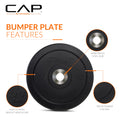 Details: The CAP Barbell PRO Bumper Plate Logo offers protection for both the barbell and the bumper plates with its sound construction. The steel insert hubs reinforce the holes and protect the bar at the same time. This Olympic weight plate set can only be used with Olympic bars (with a 2-inch sleeve diameter). Each weight is made from solid cast iron and coated in virgin and recycled rubber. Adding weights to any fitness routine helps to increase muscle mass while burning more calories and reducing body fat. Add these Olympic bumper plates to your home gym and start experiencing the benefits they can offer to your fitness routine. 30-day manufacturer .