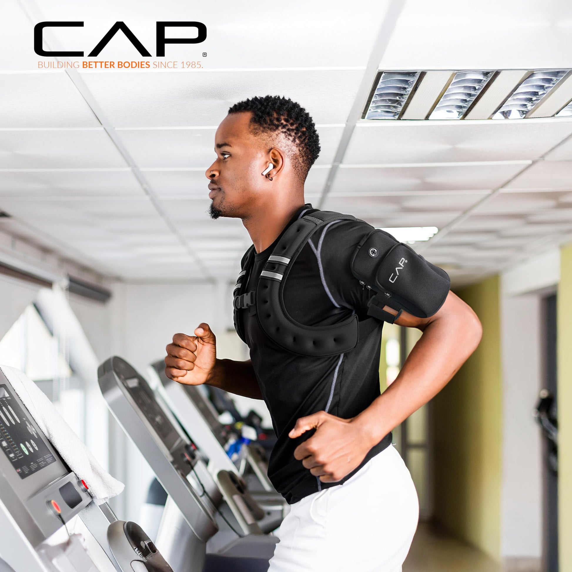 CAP Barbell 8LB Weighted Vest Black – Unisex Workout Vest with Phone Pouch, Reflective Strips, and Adjustable Fit for Walking, Running, Cardio, and Strength Training