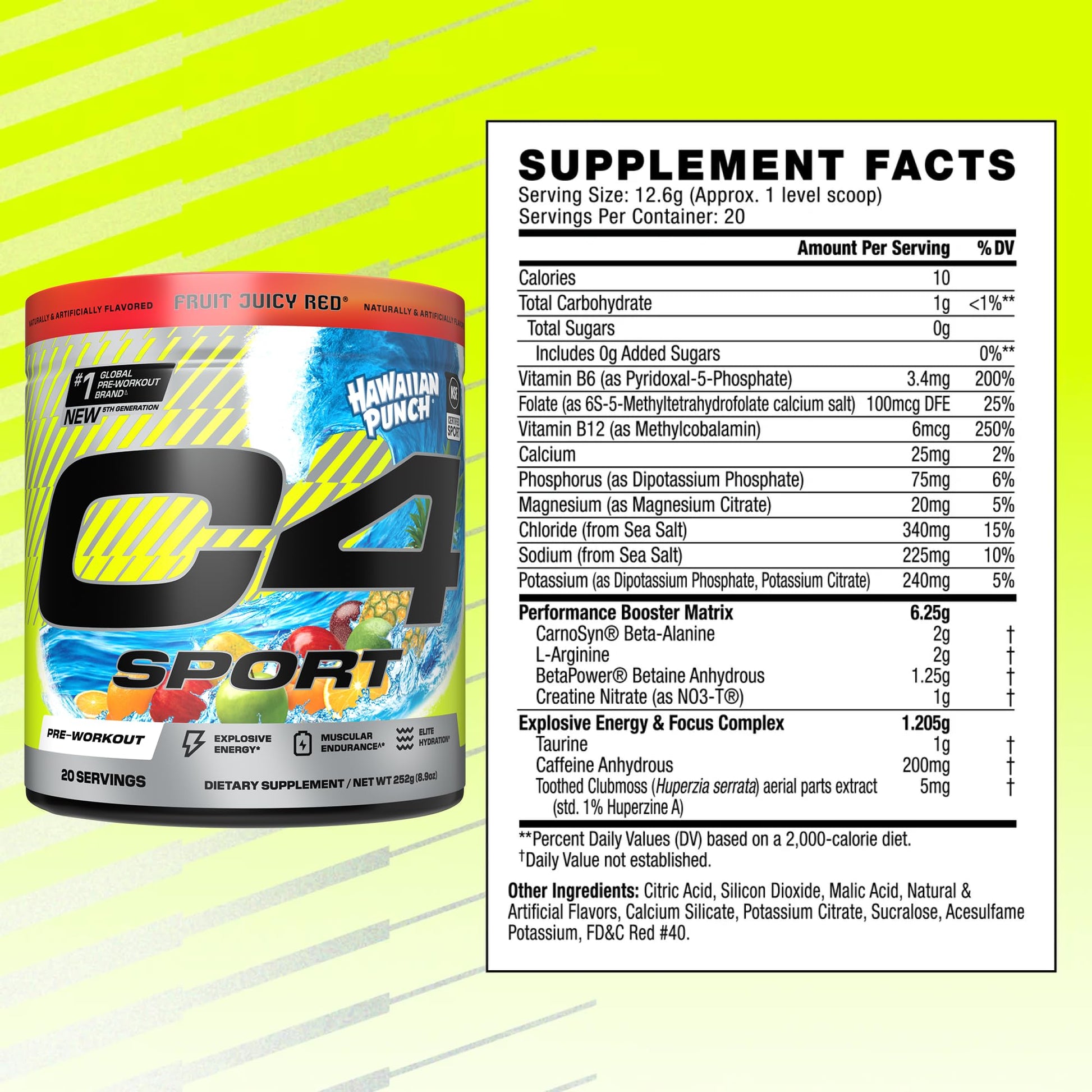 Cellucor C4 Sport Pre Workout Powder - NSF Certified for Sport - Elite Hydration - 200mg Caffeine + Creatine + Beta-Alanine - Electrolytes and Energy Supplement - Hawaiian Punch, 20 Servings