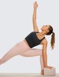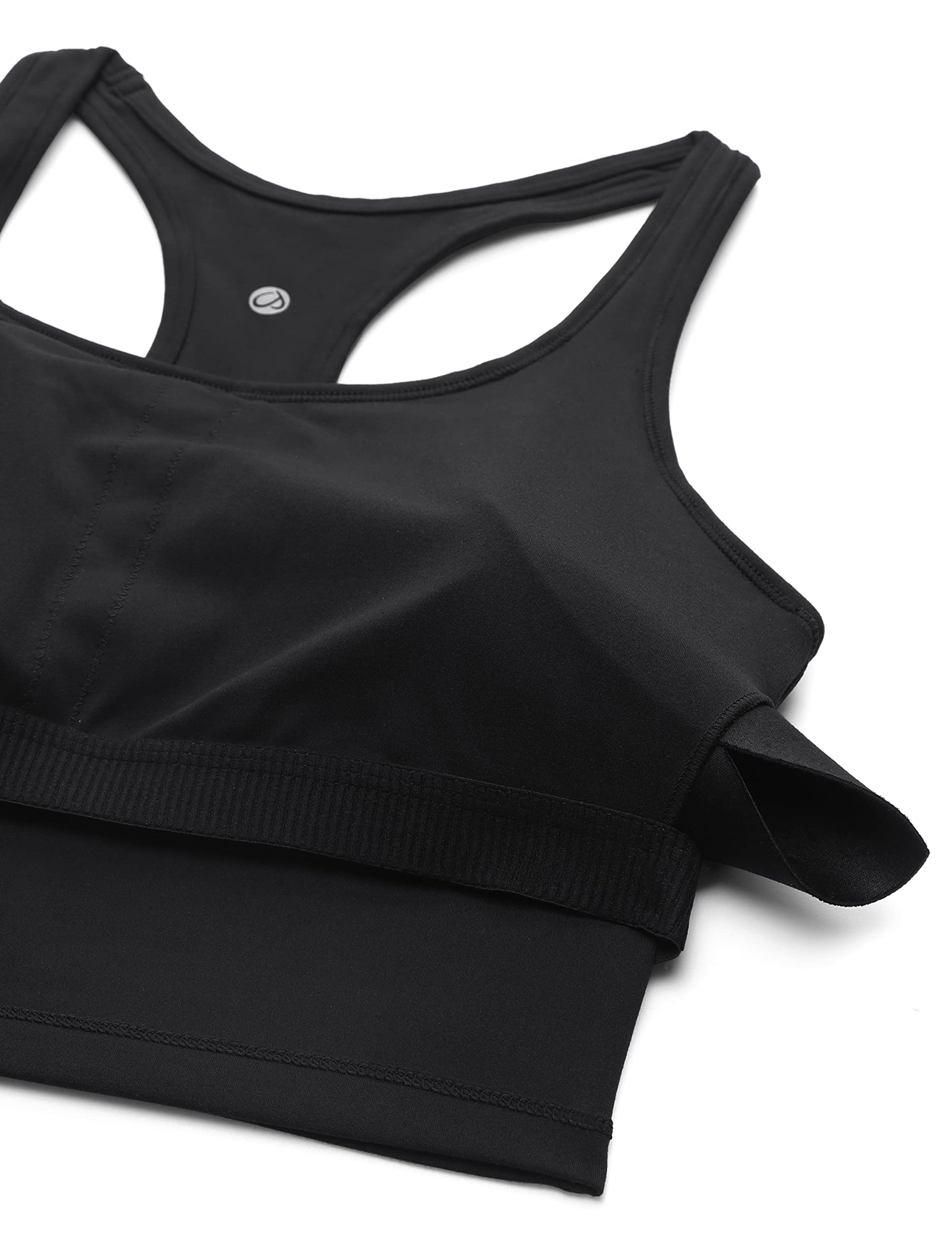CRZ YOGA Butterluxe Womens Y-Back Racerback Longline Sports Bra - Padded Scoop Neck Workout Crop Tank Top with Built in Pads Black Small