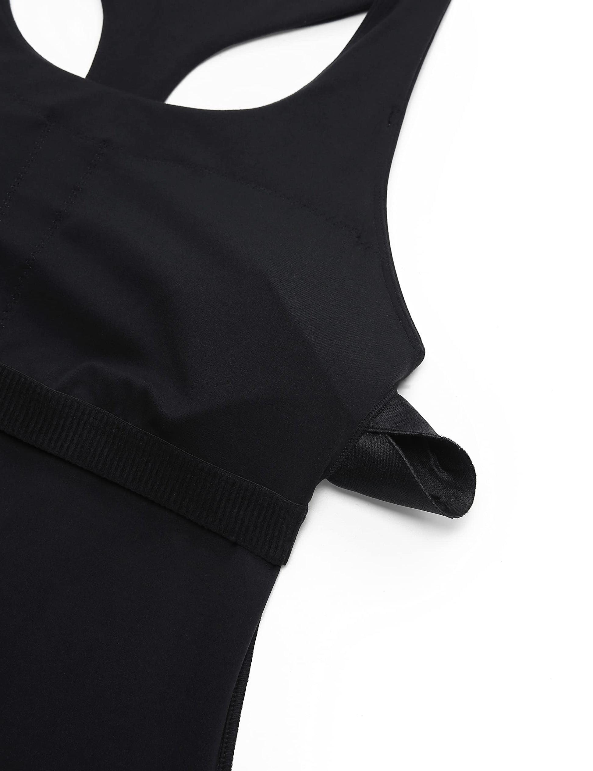 - Scoop neckline. Racerback design for decent support