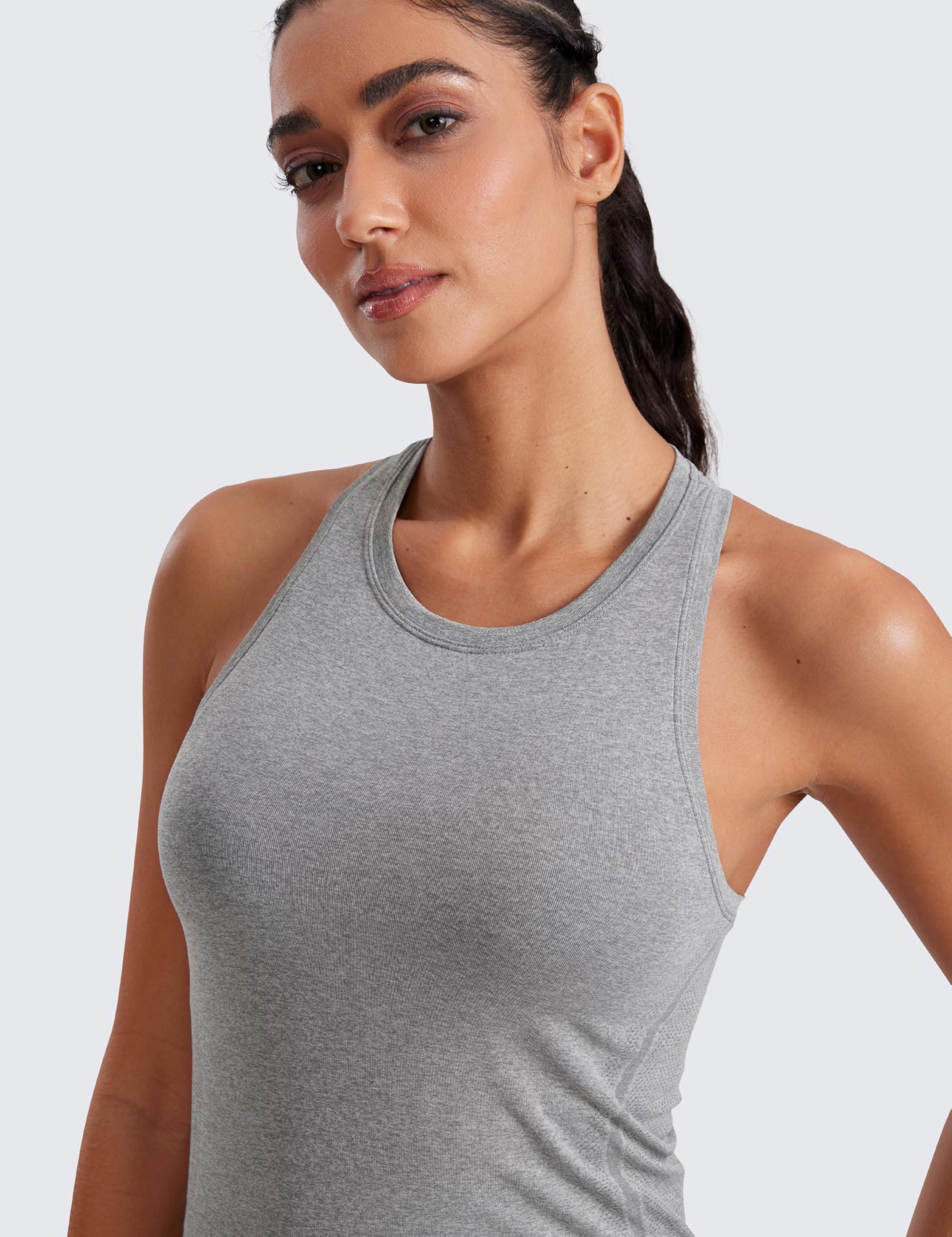 CRZ YOGA Seamless Womens Breathable Workout Tank Tops Racerback High Neck Sleeveless Running Athletic Shirts Slate Grey Marl Medium