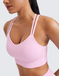 CRZ YOGA Softness Mold Womens Butterluxe Strappy Longline Sports Bra - Double Spaghetti Strap Workout Yoga Crop Top Athletic Vita Pink Small