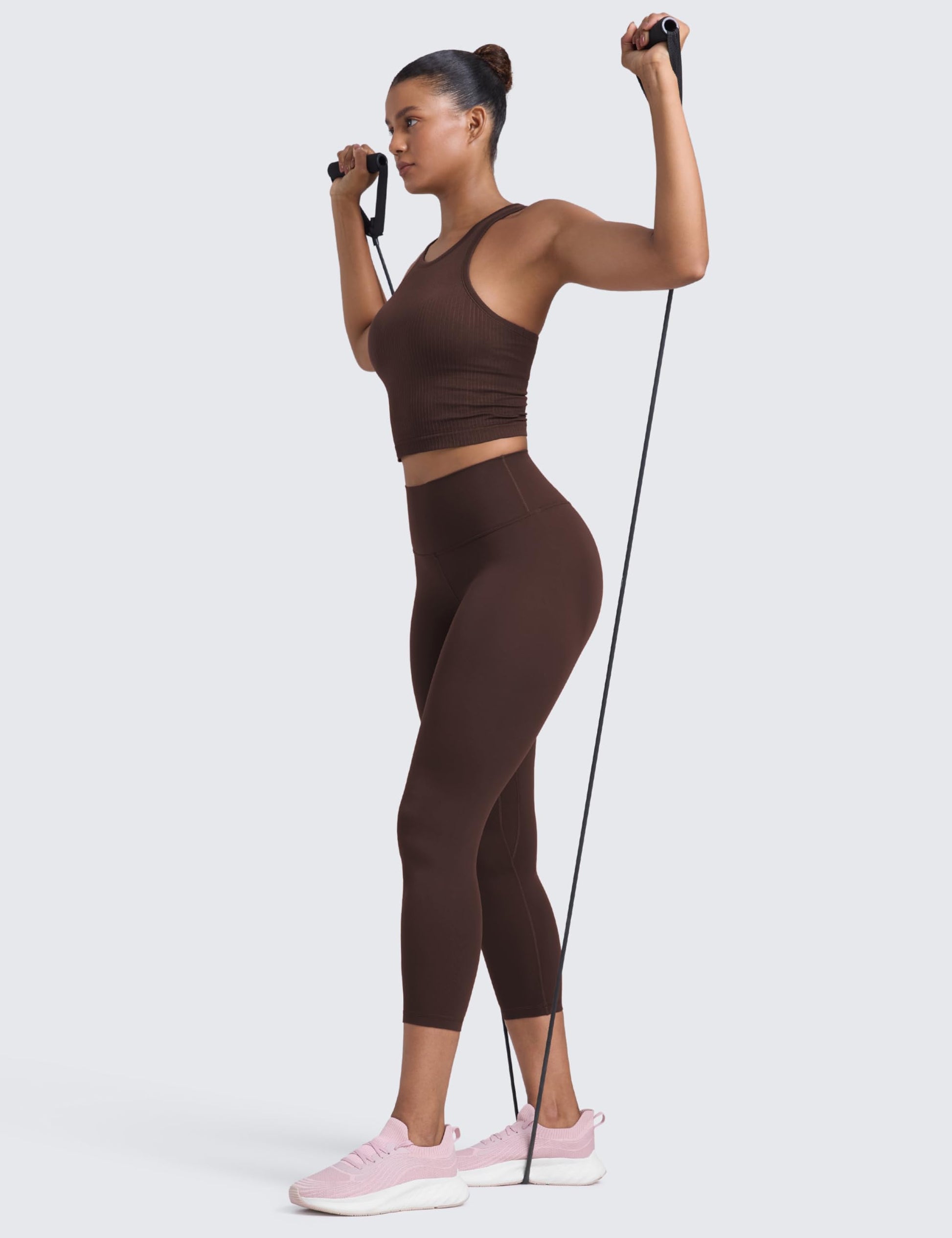 CRZ YOGA Womens Butterlift High Waisted Capris Leggings 23" - Workout Pilates Crop Gym Athletic Yoga Pants Hot Fudge Brown Medium