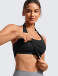 CRZ YOGA Womens Butterluxe Halter Longline Sports Bra - Padded Workout Yoga Crop Tops Tanks with Built in Pads Black Small