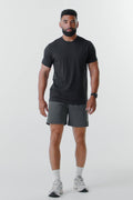Fabletics Men's The One Short (Lined), Training, Swimming, Lightweight, Quick-Dry, Zip Pocket, Stretch Woven, M / 7", Onyx