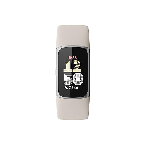 Fitbit Charge 6 Fitness Tracker with Google apps, Heart Rate on Exercise Equipment, 6-Months Premium Membership Included, GPS, Health Tools and More, Porcelain/Silver, One Size (S & L Bands Included)
