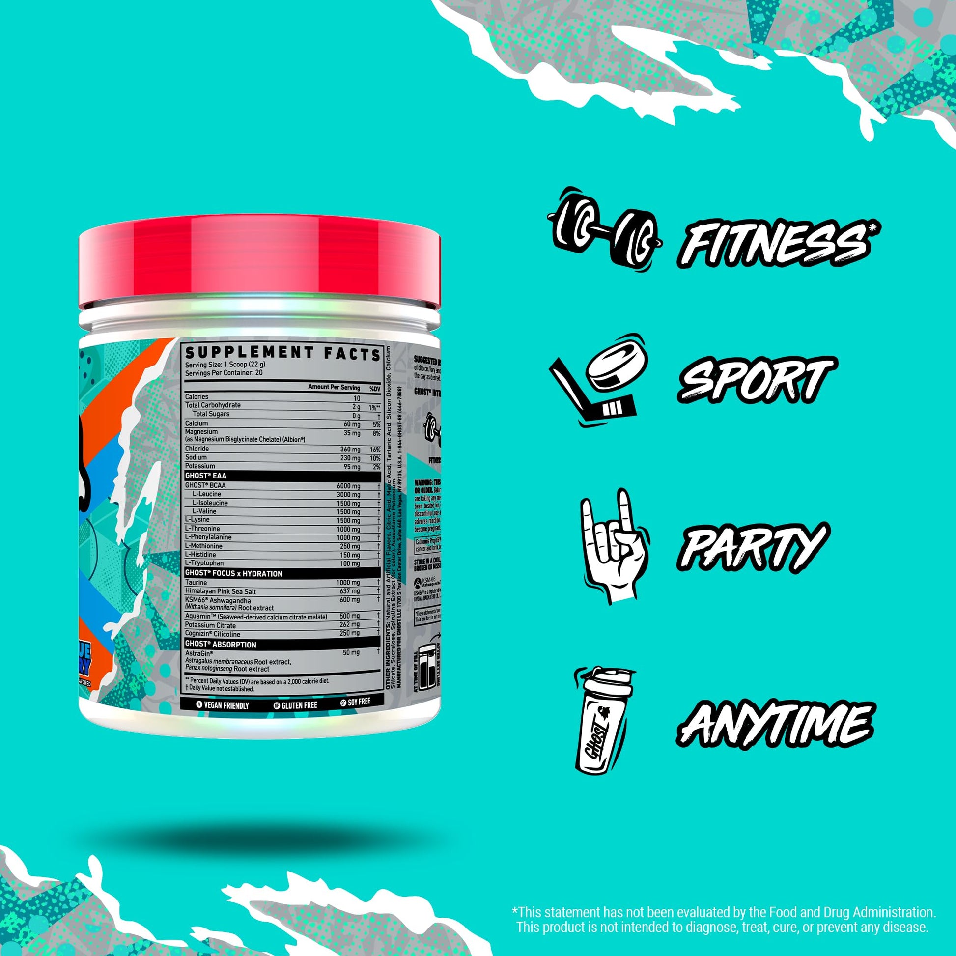 - 9 Essential Amino Acids: GHOST Intra delivers a massive 6G BCAAs (3G L-Leucine, 1.5G L-Isoleucine, & 1.5G L-Valine) and 4G EAAs per scoop.
