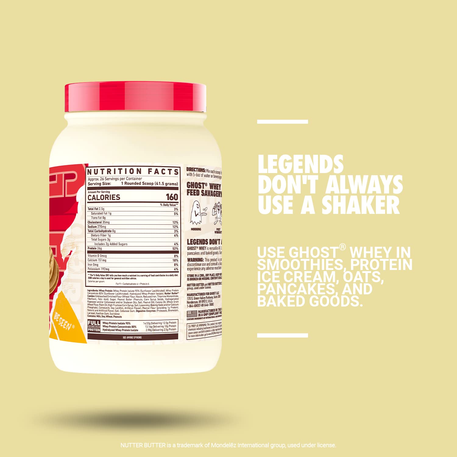 - Versatile and Delicious: GHOST Whey x Nutter Butter combines a premium, fully disclosed whey protein blend, a few digestive enzymes, and real Nutter Butter cookie pieces in every scoop for a flavor that is second to none. 26 servings.