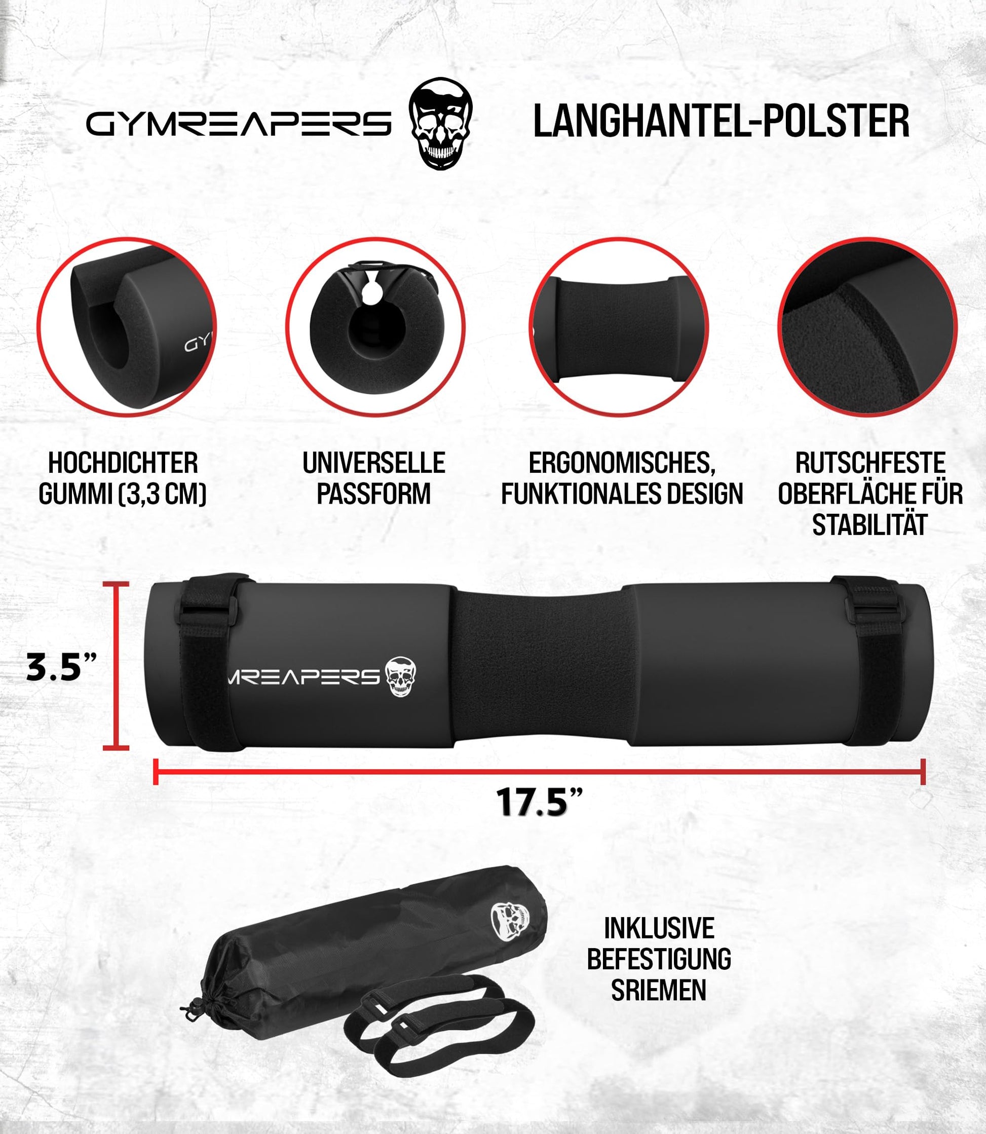 - SLIDE ON, ANTI SLIP PAD - Our foam pad for lifting can be easily slid onto any barbell and secured with optional straps. The anti slip foam material prevents frustrating movements through your training. Each barbell pad comes with straps and a branded carry on case for your convenience.