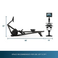 - Move it out of sight anytime. This foldable rowing machine can be stored upright using our Upright Storage Kit (sold separately). Dimensions: 80"L x 19"W x 43"H; Weight: 102lbs; Weight limit up to 375 pounds.
