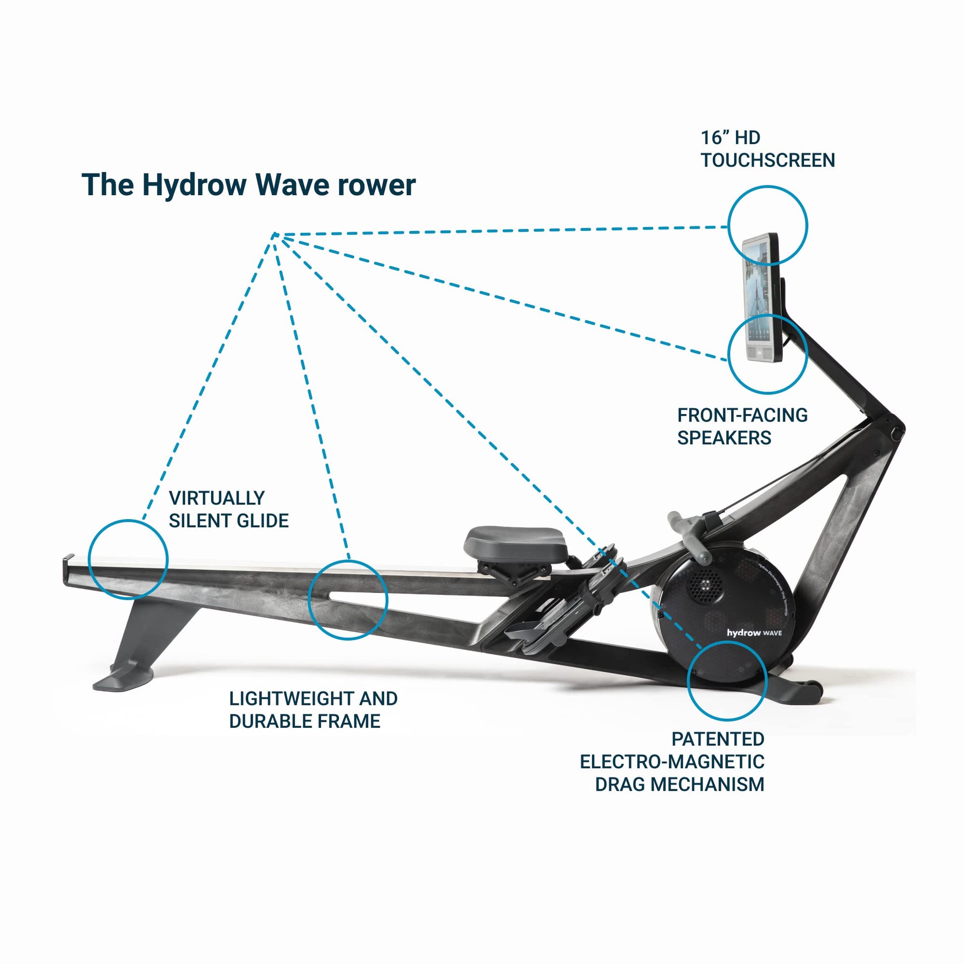 - Escape into every workout. The Wave’s patented electromagnetic drag technology is designed to mimic the feeling of rowing on water. And with a crystal-clear 16” HD touchscreen display with front-facing speakers, the experience is about as immersive as it gets. Features include padded seat, adjustable foot straps, and a low-stress grip handle.