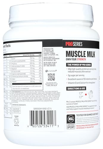 Details: Muscle Milk Intense Vanilla Pro Series 50 Lean Muscle Mega Protein Powder. Building athletes from the inside Out. Genuine. Cytosport. Taste satisfaction guaranteed. Naturally and artificially flavored. 50g lean protein per 2 scoops
