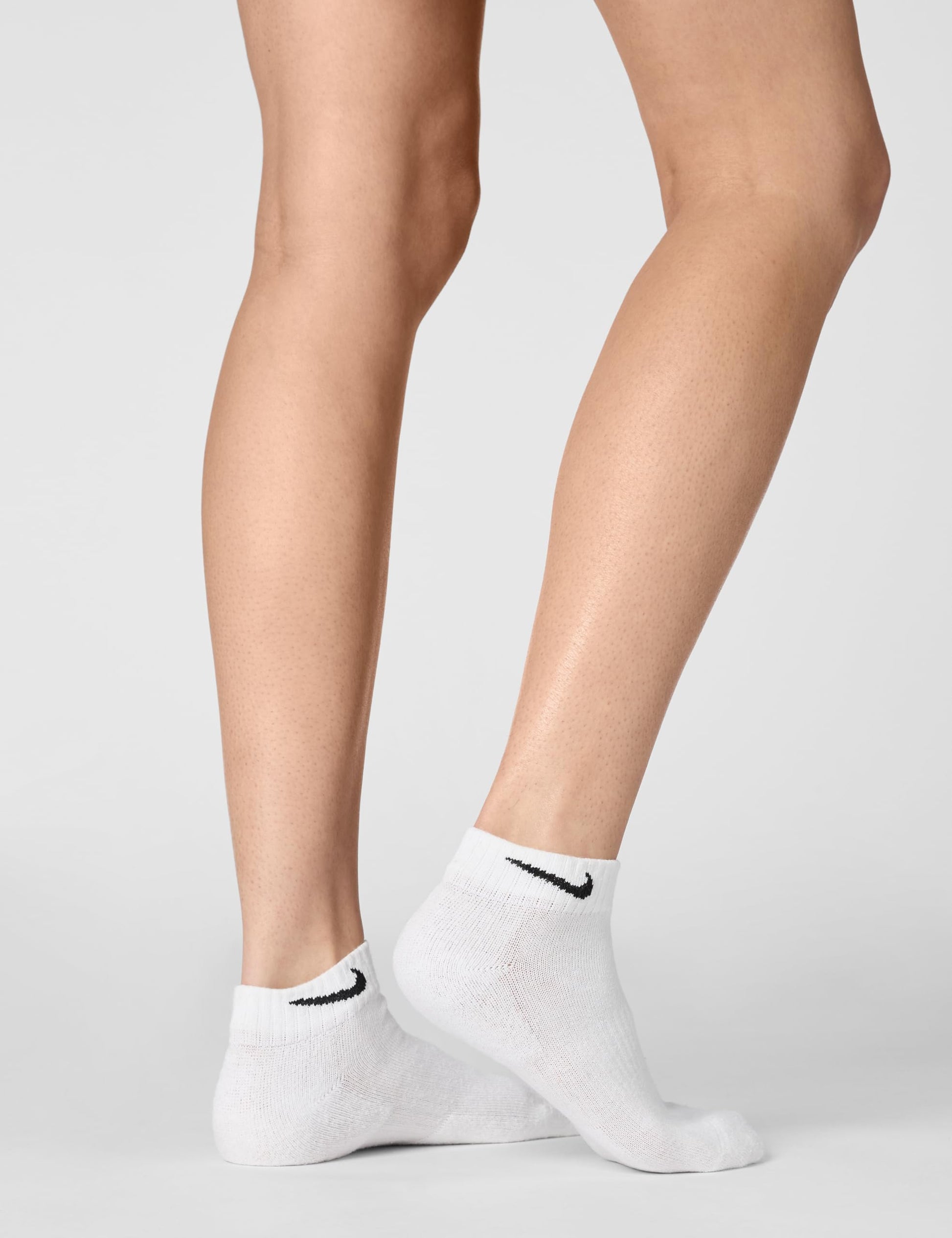 Nike Unisex Everyday Cushioned Training Low Socks (3 Pairs), White/Black, Small
