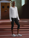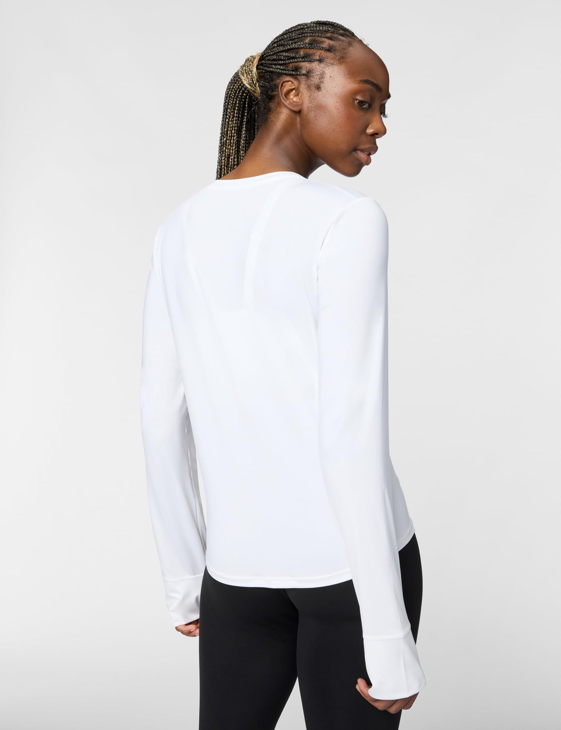 - A crew neckline adds a classic, timeless vibe to the top. The curved hem and elegant seam lines throughout the design keep the look sleek, so you can wear it as the first layer—or the only layer.