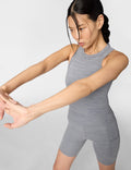 - Binding at the neckline and arm openings give the tank a refined finish. A curved hem and elegant seam lines throughout the design keep the look polished, so you can wear it as the first layer—or the only layer.