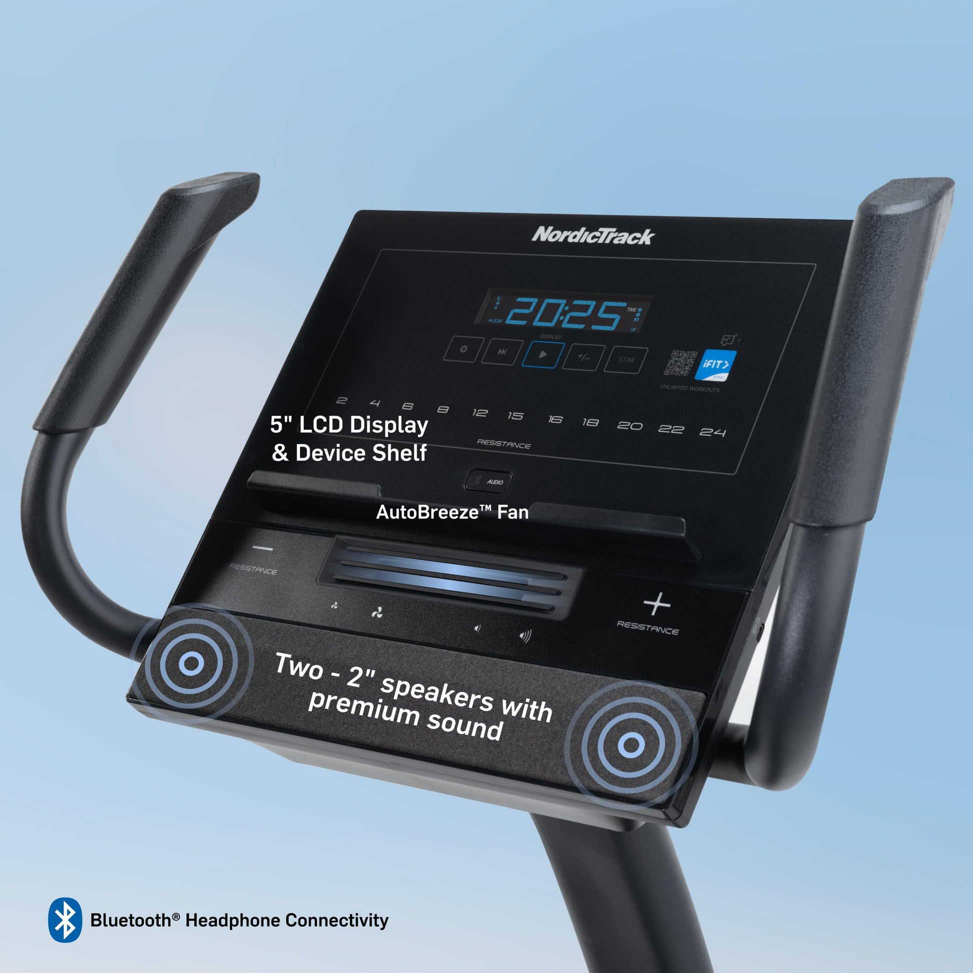 - 5" LCD Display & Device Shelf: See your live workout stats on the clear 5” LCD display. Or, connect your own device to iFIT and rest it on the device shelf to follow iFIT Trainers in workouts around the world. (Train subscription required)