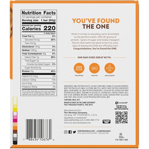 - THE ONE PROTEIN BAR: Discover all the mouthwatering, high-protein bars from ONE! Whether you're craving our classic core flavors, limited-edition options, or even a Hershey's ONE Reese's Peanut Butter Lovers Bar, weve got something for every taste. Packed with protein and flavor, these bars are perfect for fueling everyday. Try them all and find your next pantry staple today!