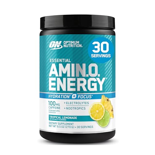 Optimum Nutrition Amino Energy Powder Plus Focus, with BCAA, Electrolytes, and Caffeine, Tropical Lemonade, 30 Servings (Packaging May Vary)
