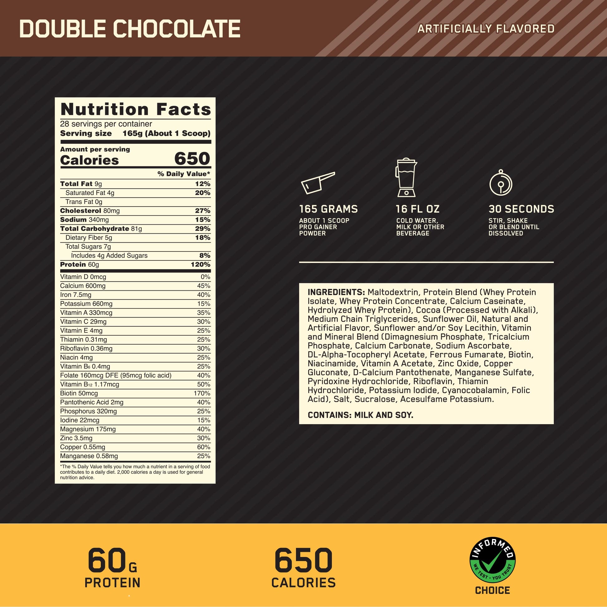 Optimum Nutrition Gold Standard Pro Gainer, Weight Gainer Protein Powder, Double Chocolate, 10.19 Pounds (Packaging May Vary)