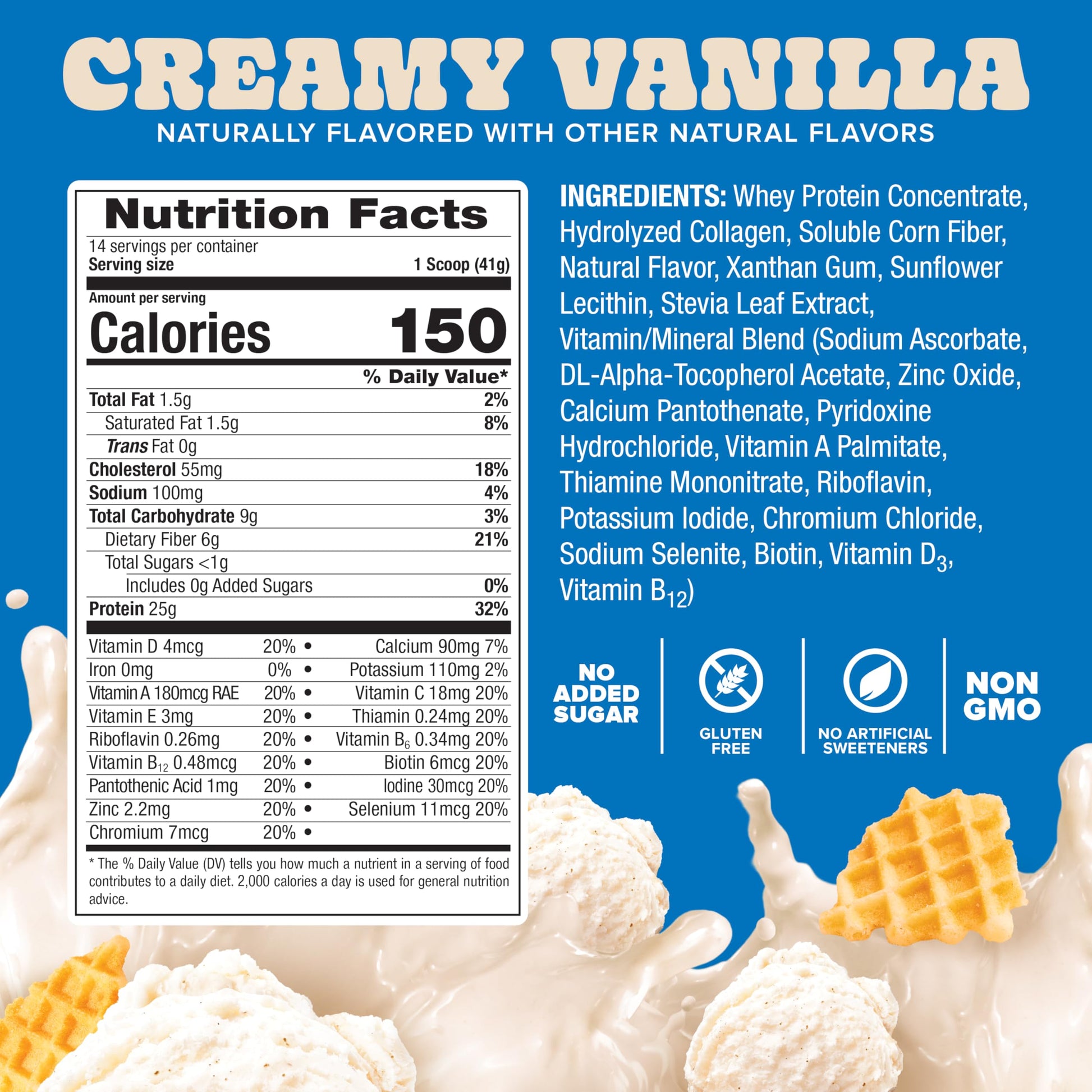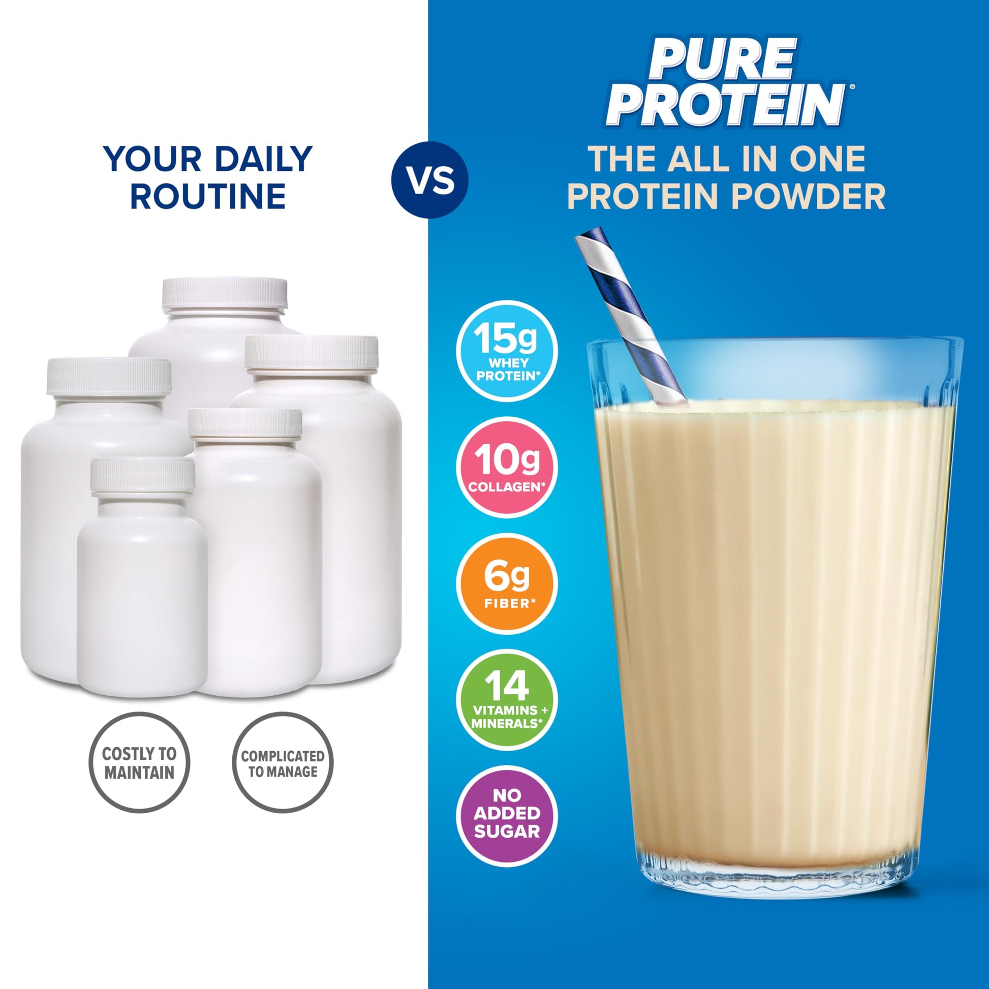 Pure Protein All-In-One Powder, Vanilla - Whey & Collagen, High Fiber, Vitamins, No Added Sugar, Non-GMO, Gluten-Free, 1.25lb
