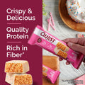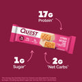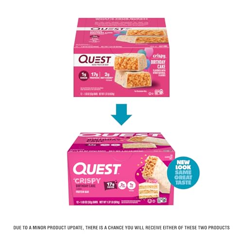 - AT HOME OR ON-THE-GO. Quest Crispy Birthday Cake Flavored Bars with 17g of grab & go protein are just right for your morning commute, as a tasty treat at your desk, or a delicious way to refuel after a workout.
