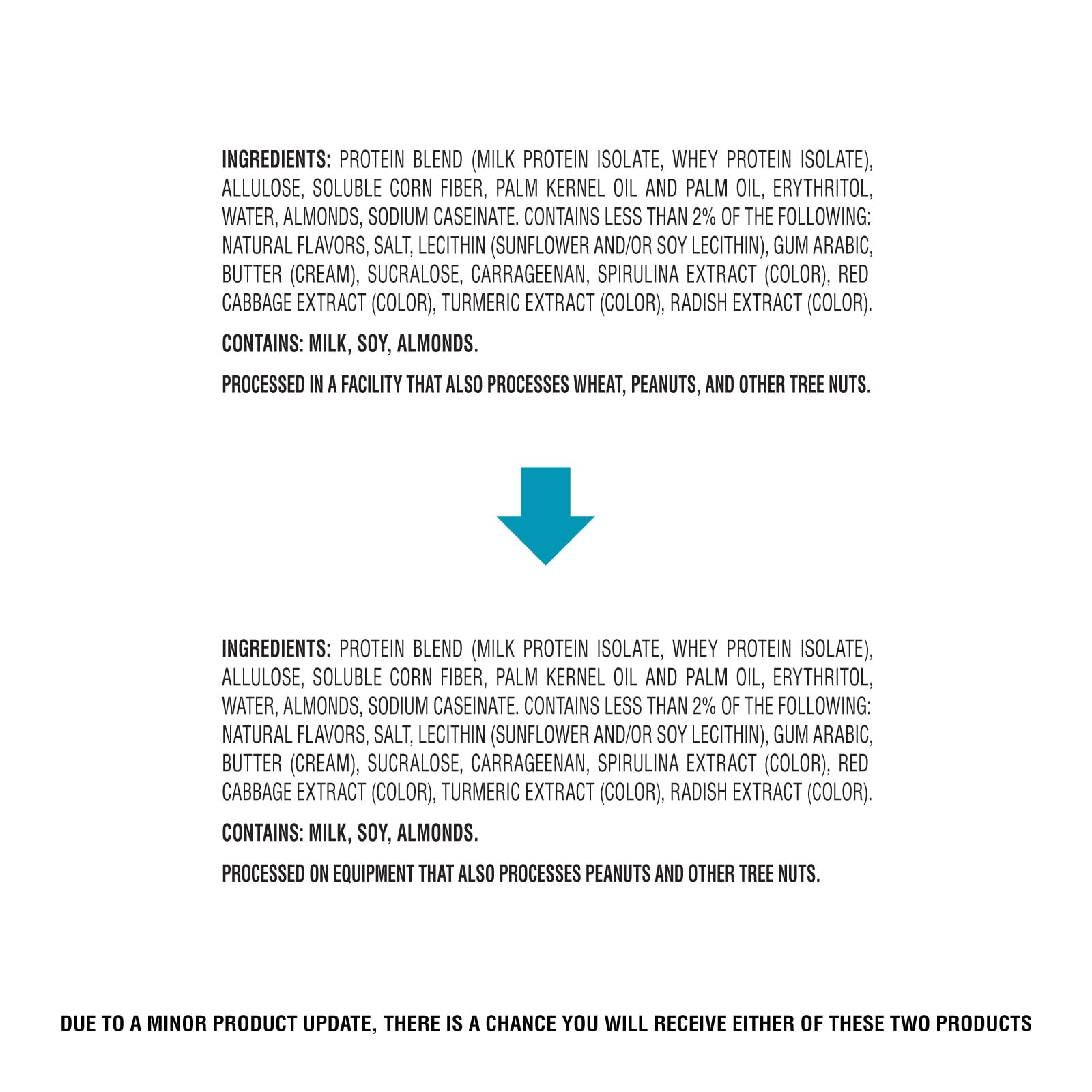 - PROTEIN FORWARD. 17g of protein, 1g of sugar, and 2g of net carbs per serving. Support your fitness goals and enjoy a crispy, chewy bar with the deliciously sweet, rich vanilla flavor of birthday cake.