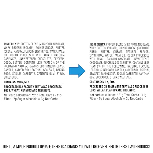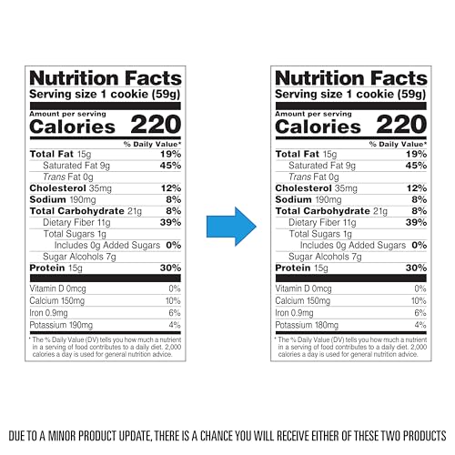 - PROTEIN FORWARD. 15g of protein, 1g of sugar, and 3g of net carbs per serving. It’s the deliciously sweet, high protein snack to support your fitness goals while living the double chocolate chip cookie dream.