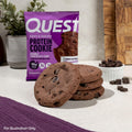- AT HOME OR ON-THE-GO. Quest Double Chocolate Chip Protein Cookies with 15g of grab and go protein are just right for your morning commute, as a tasty treat at your desk, or a delicious way to refuel after a workout.