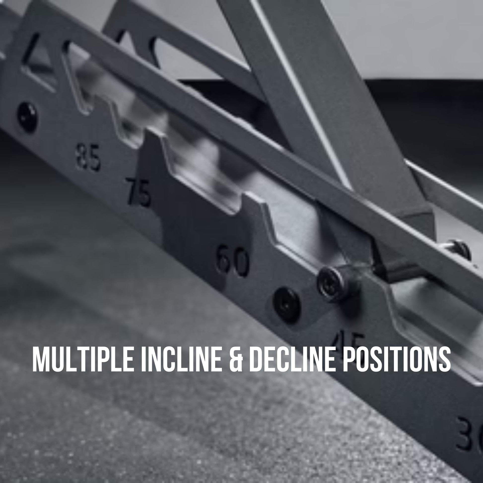 • Adjustable flat, incline, and decline positions for full-body strength training
