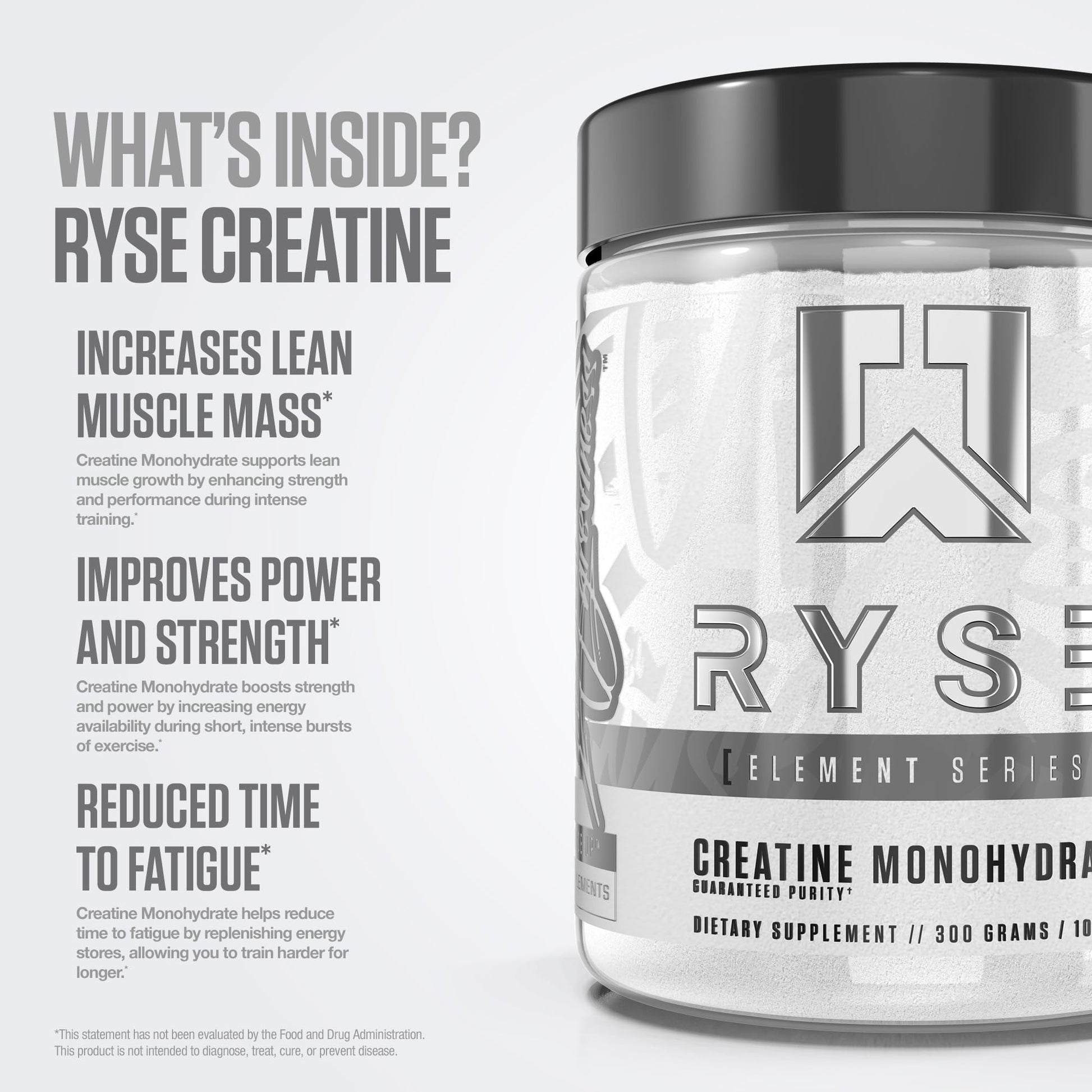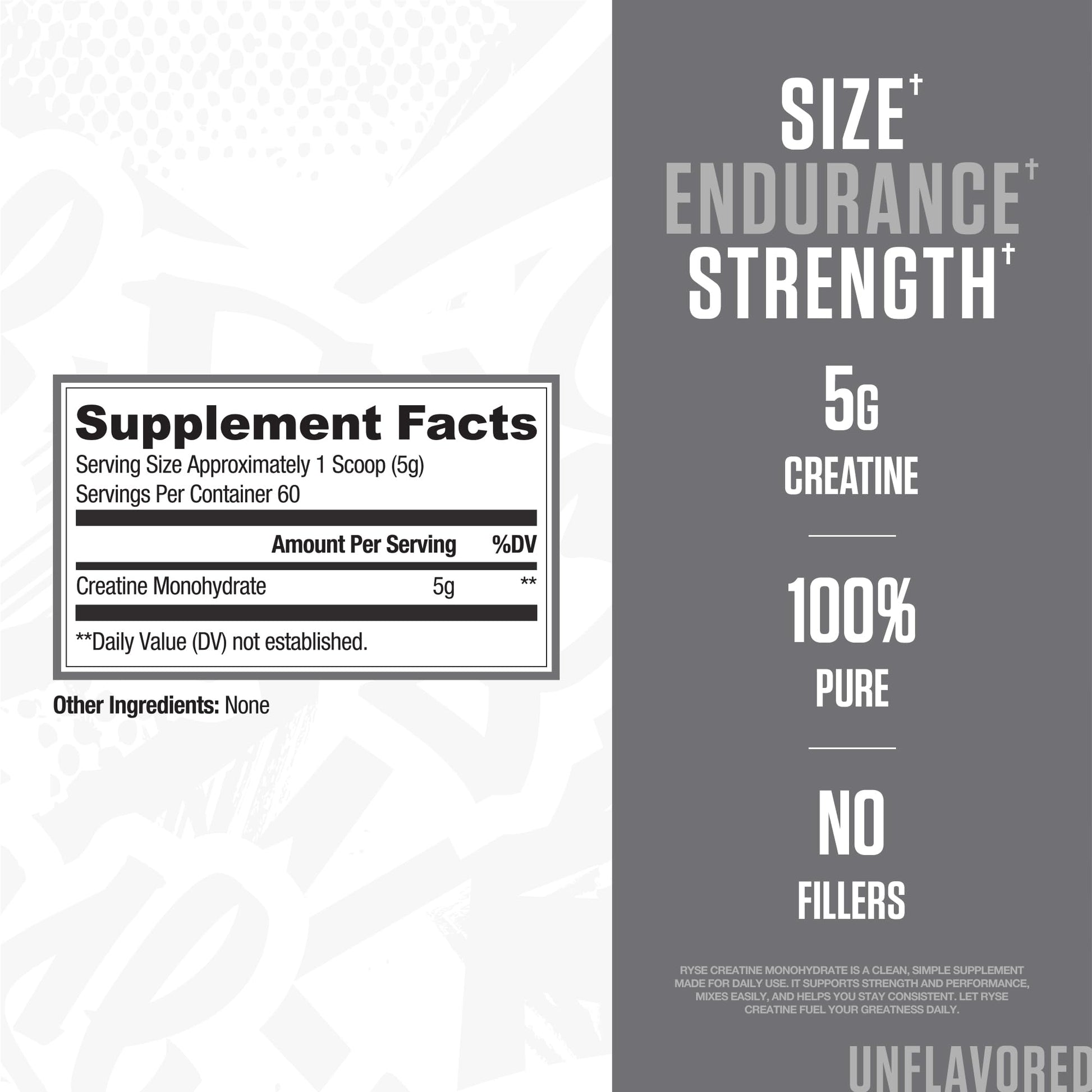 RYSE Creatine Monohydrate Powder - Unflavored - Supports Men & Women Lean Muscle Growth, Strength, Power, and Endurance - Helps Reduce Fatigue and Improve Workout Recovery - 60 Servings