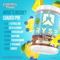 RYSE Loaded Pre Workout Powder - Country Time Blueberry Lemonade - Daily Pre-Workout for Men & Women with 300mg Caffeine, Beta Alanine, and Citrulline for Pump, Focus, and Energy - 30 Servings