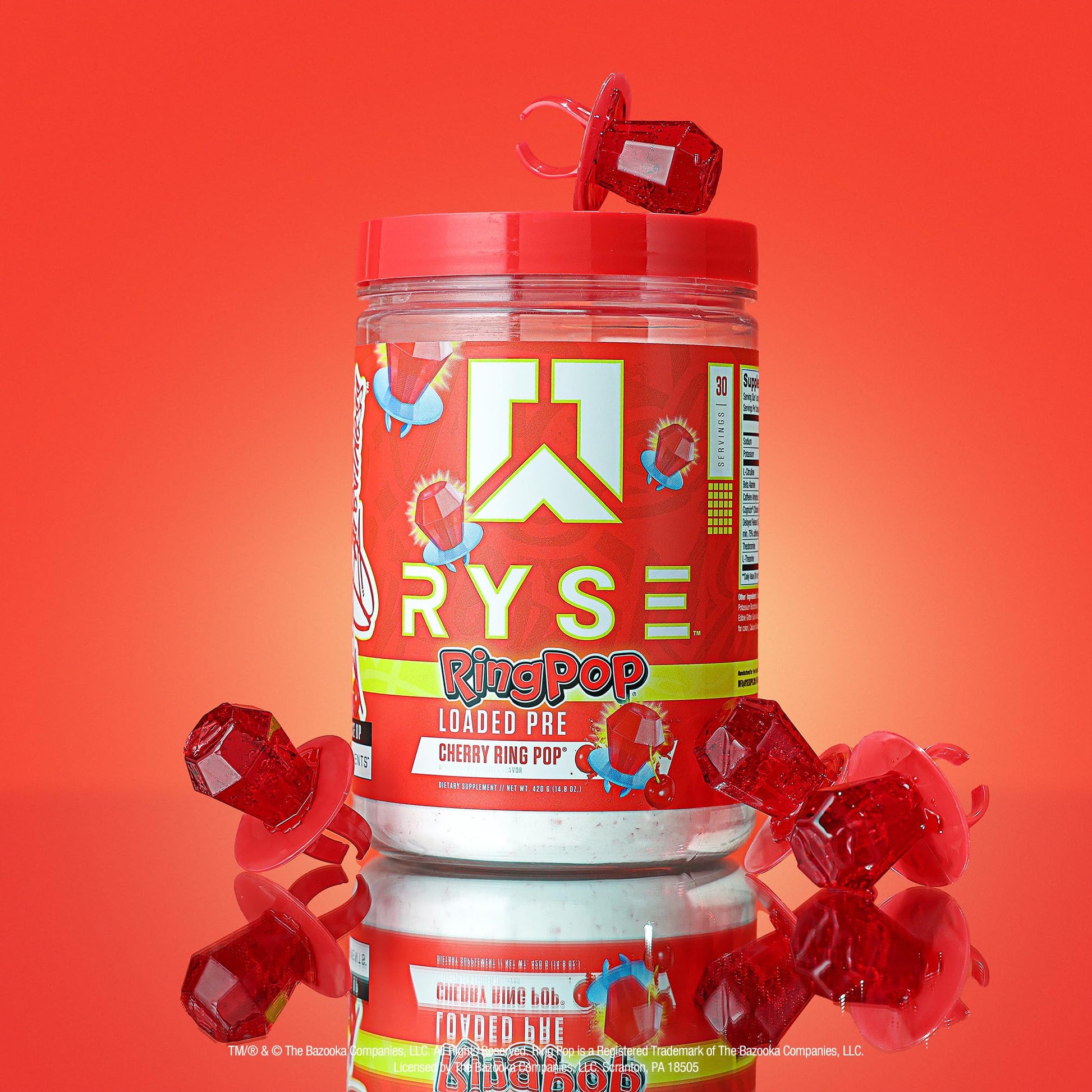 RYSE Loaded Pre Workout Powder - Ring Pop Cherry - Daily Pre-Workout for Men & Women with 325mg Caffeine, Beta Alanine, and Citrulline for Pump, Focus, and Energy - 30 Servings
