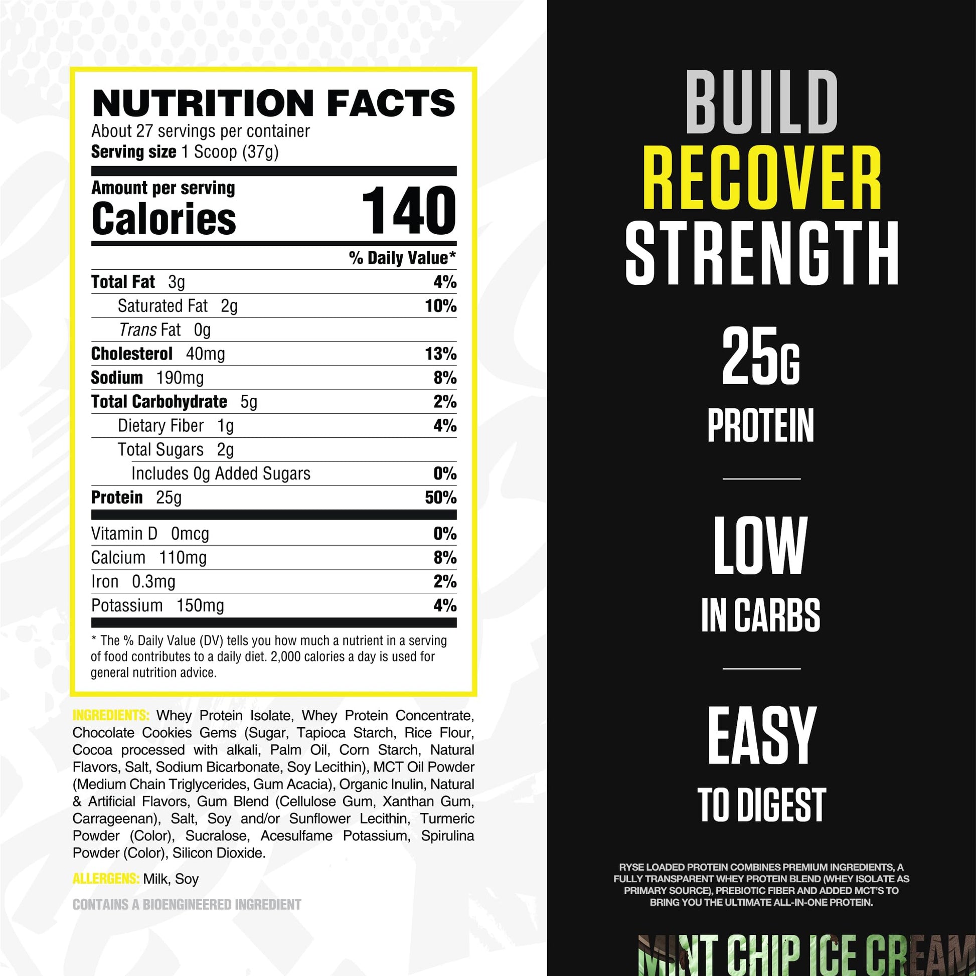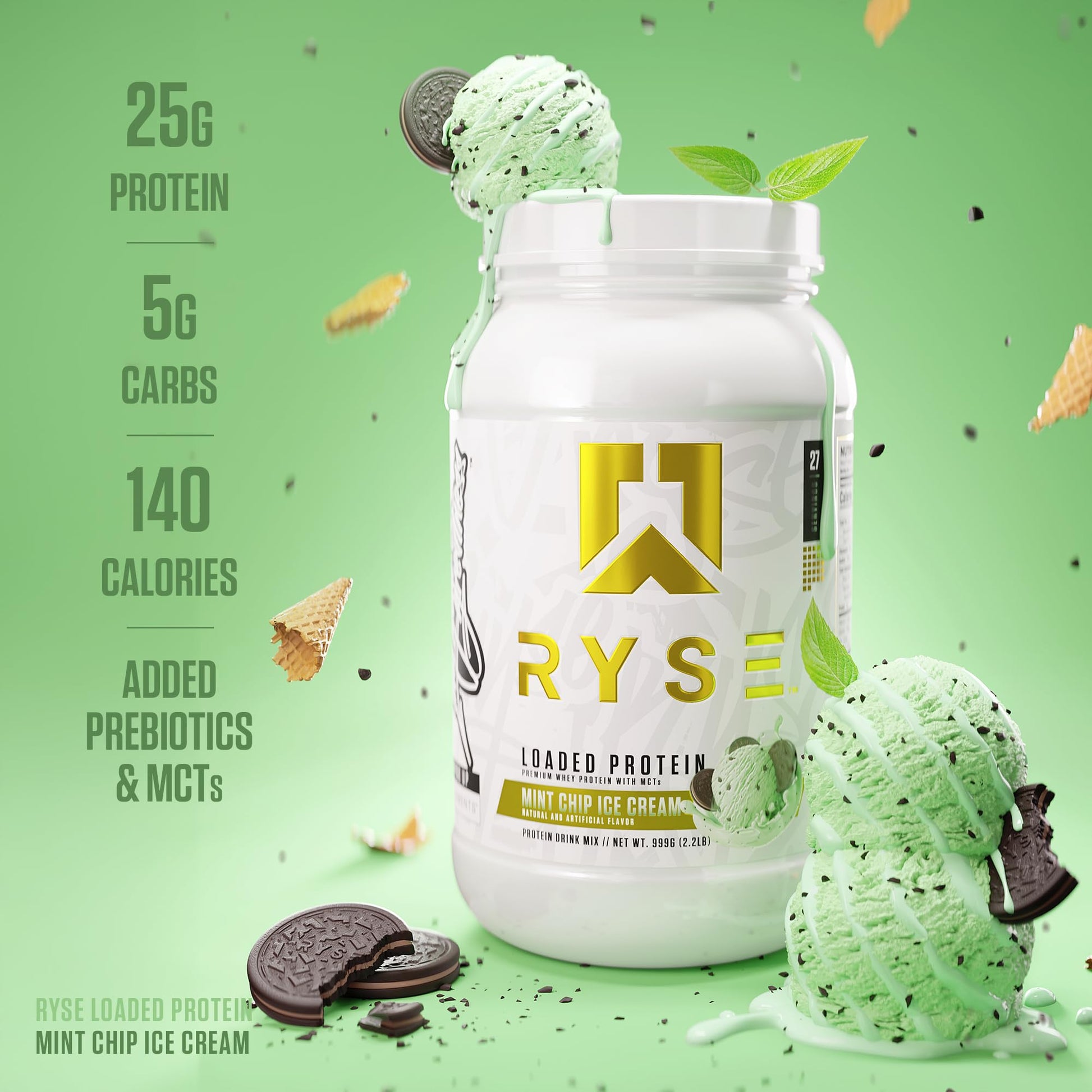 RYSE Loaded Protein Powder - Mint Chip Ice Cream - 25g Whey Protein Isolate & Concentrate with Prebiotic Fiber & MCTs - Low Carb, Low Sugar, Digestive-Friendly - 27 Servings / 2 lb Tub