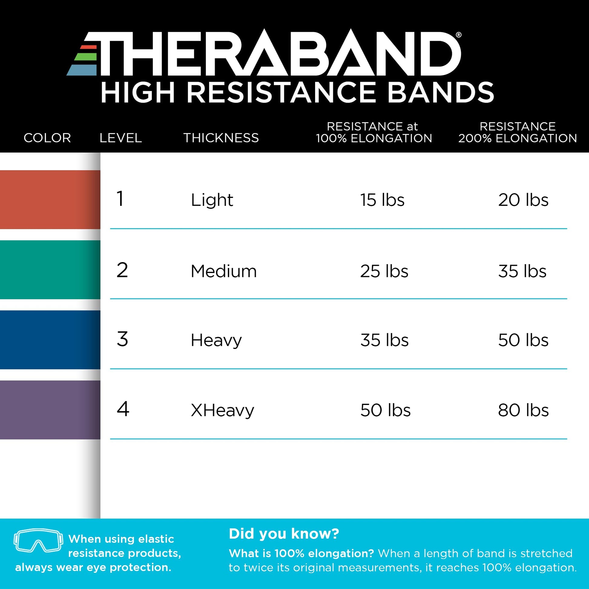 Details: THERABAND High Resistance Bands represent our latest innovation in resistance band technology. The new bands each feature the exact resistance force on them making it quick and easy to identify which band is right for you. The THERABAND brand is backed by 40 years of professional use and is the most trusted resistance band by clinicians. THERABAND: Defy Your Best.