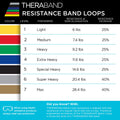 - COLOR-CODED RESISTANCE FOR PROGRESSION: The Band Loop Set includes Level 1 Yellow (Light – 6 lbs), Level 2 Red (Medium – 7.4 lbs), Level 3 Green (Heavy – 9.2 lbs), and Level 4 Blue (Extra Heavy – 11.6 lbs), each increasing by 25% of resistance from the previous level