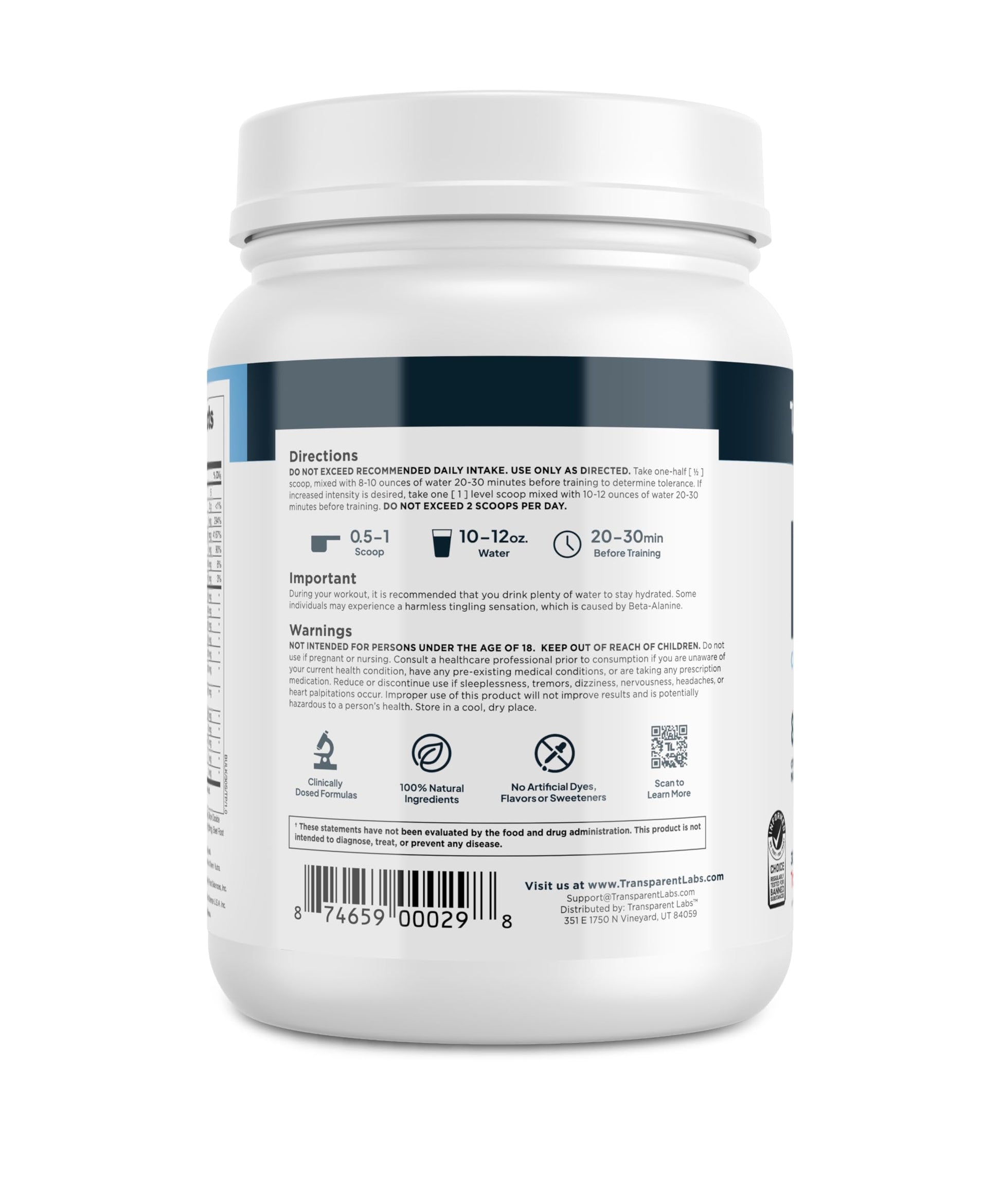 - Science-Backed Formula: Transparent Labs Bulk Pre-workout is distinguished by its extensive, evidence-based formula that includes key ingredients such as Citrulline Malate, Beta-Alanine, Betaine Anhydrous, Taurine, L-Tyrosine, AlphaSize Alpha-GPC, and more. This carefully crafted blend is designed to provide a holistic boost to your workout performance, ensuring you have the necessary tools to push your limits and achieve your fitness goals.