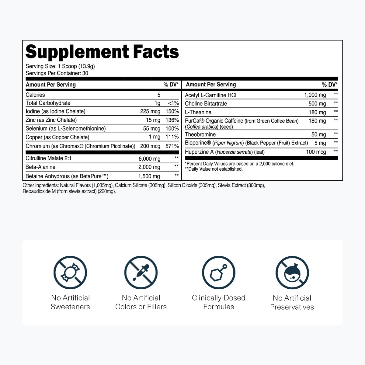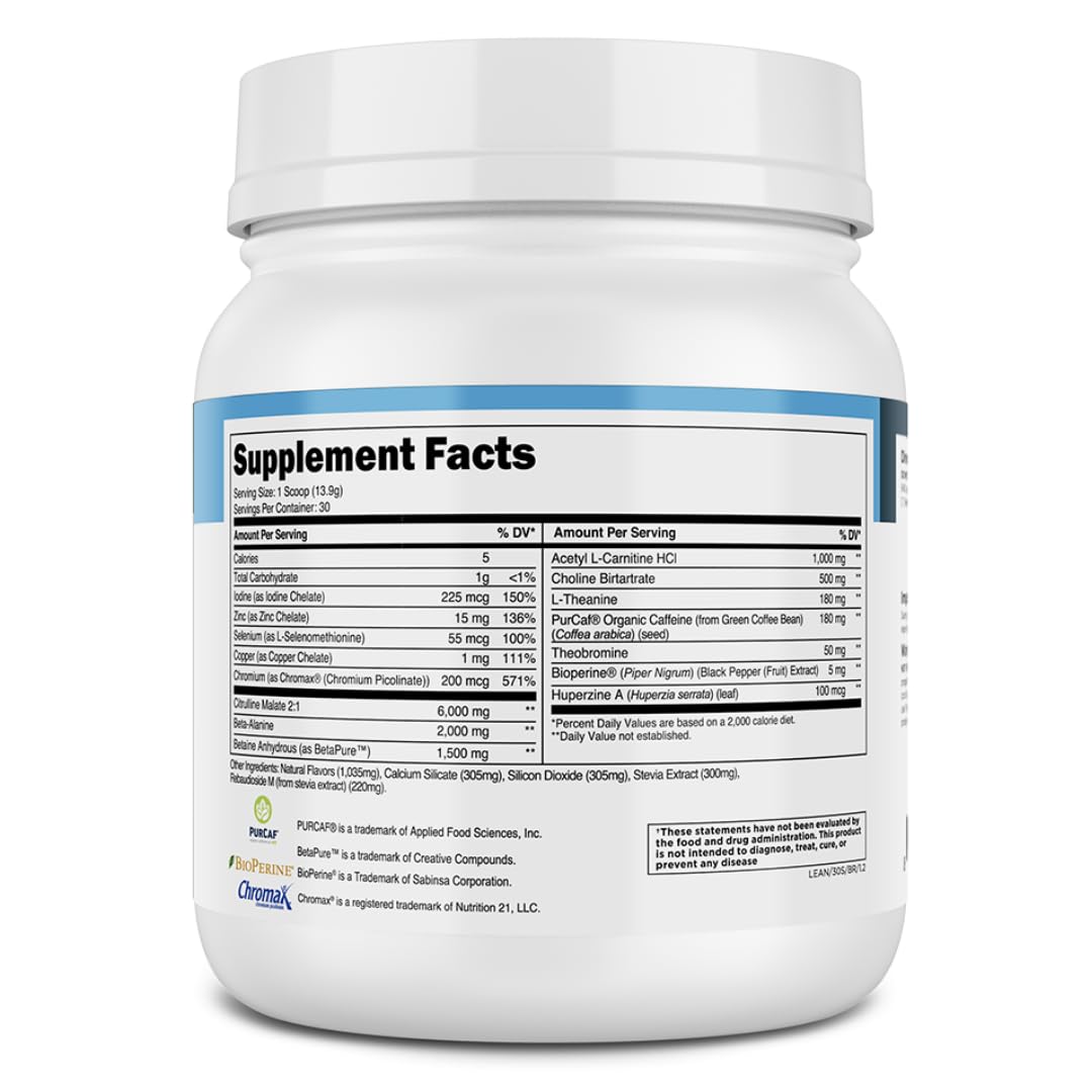 - Enhanced Focus and Sustained Energy: With cognitive-enhancing 180 mg of L-Theanine and 180mg of Purcaf Organic Caffeine, Lean Pre-Workout keeps you mentally sharp and provides sustained energy throughout your workout. This combination enhances your focus, alertness, and overall workout performance.*